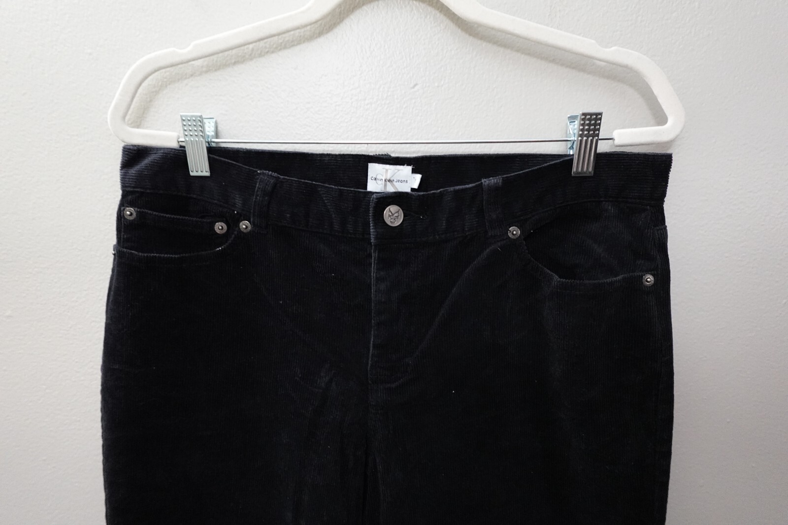 как выглядит Vintage Calvin Klein Jeans Black Corduroy Pants Womens Size 13 Flared Trousers фото