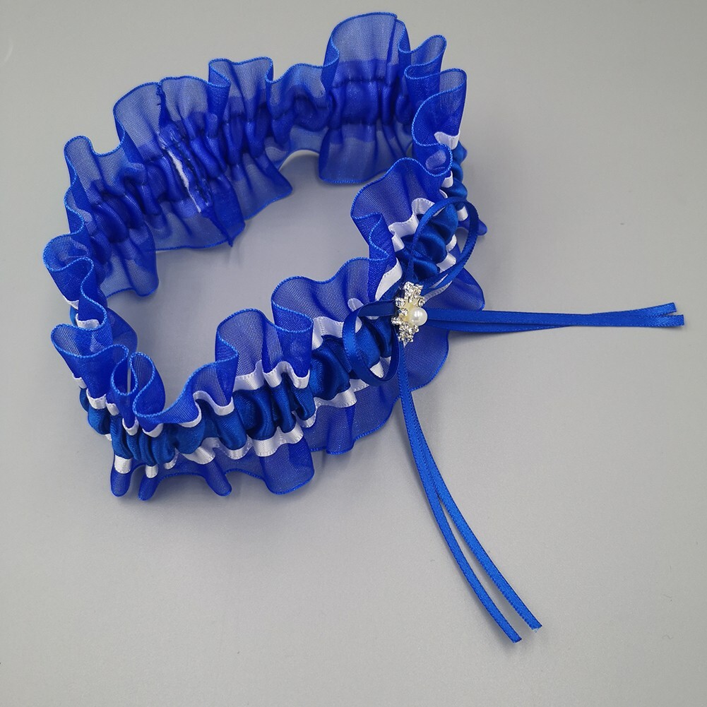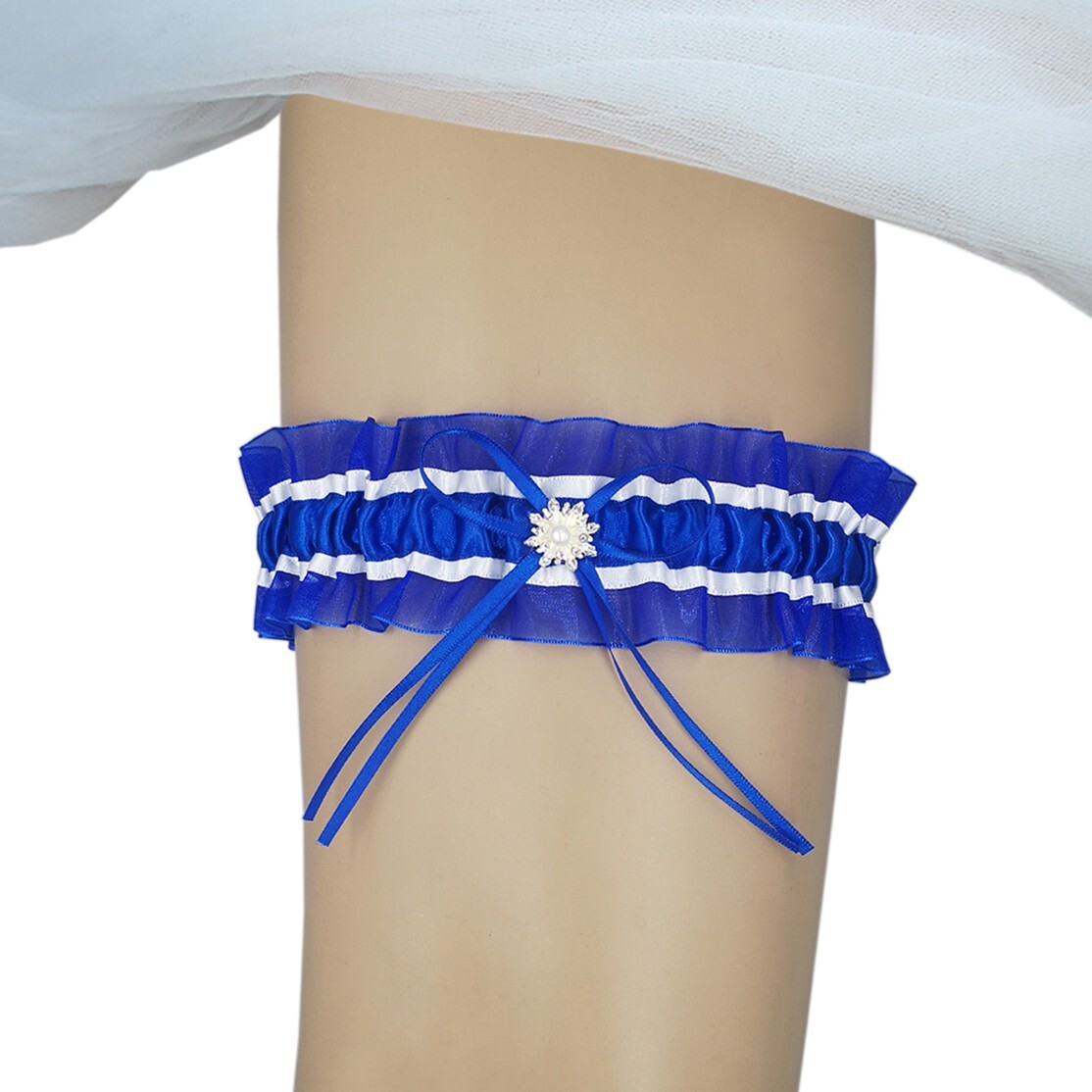 Something Blue Wedding Garter Bridal Leg Garter One Piece Royal Blue and White