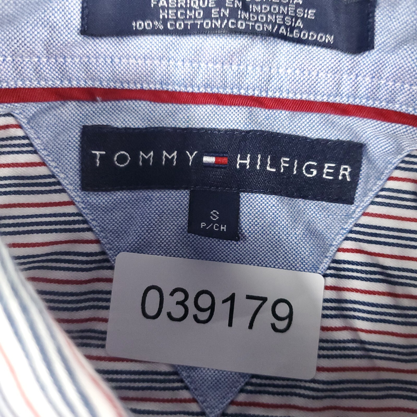 Tommy Hilfiger Shirt Mens Small Red White Blue Striped Button Up Long Sleeve