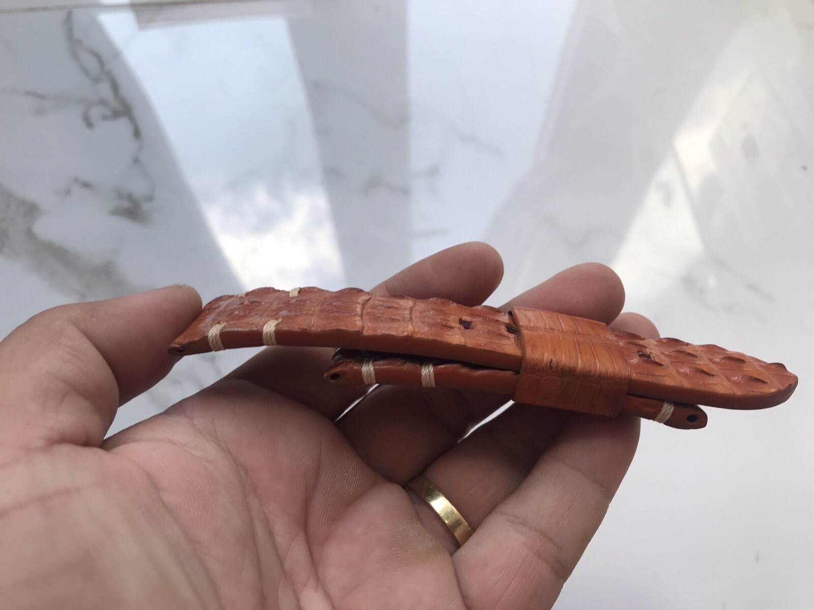 как выглядит Size 25/22 Brown Genuine Croc Leather Skin Watch Strap Band, Wristband фото