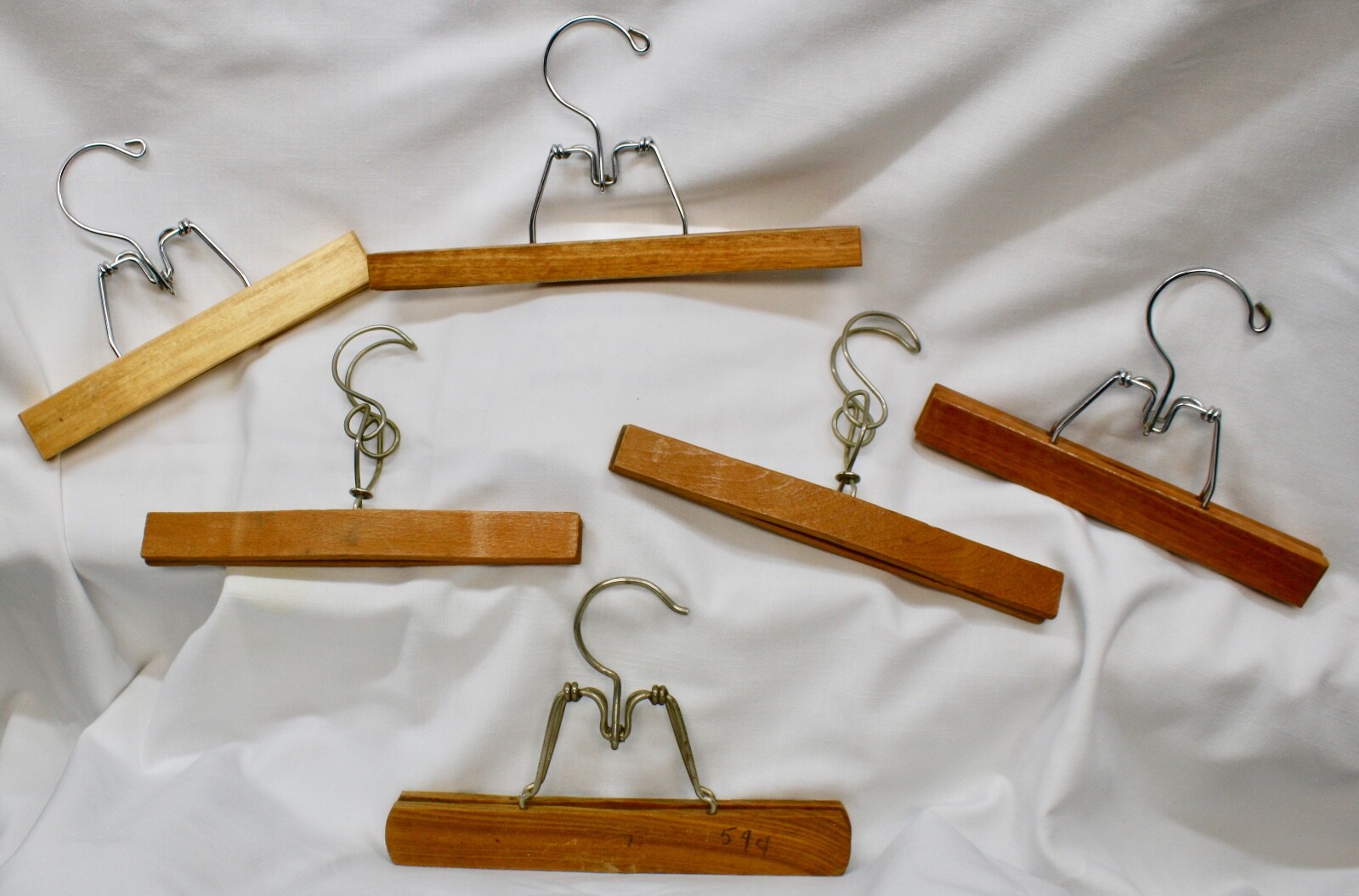 6 VTG HOOK WOOD CLAMP HANGERS SETWELL PRESTOLOK SLACKS PANTS SKIRTS