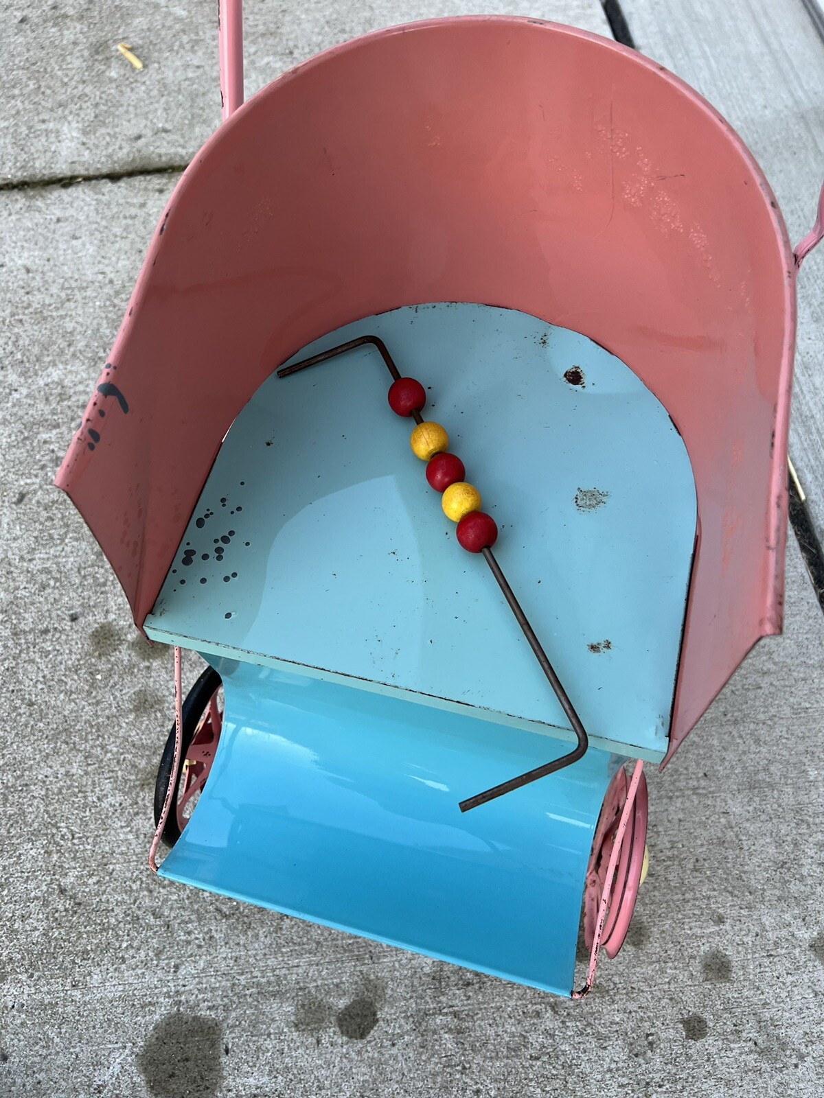 Vintage Nassau Blondie Comic 1949 metal wheel doll stroller wood beads folds up