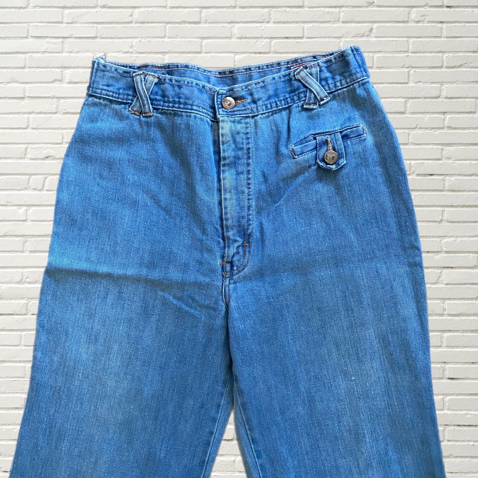 Vintage 70s Bell Bottom Jeans Light Wash High Rise Flare Leg Denim Size S