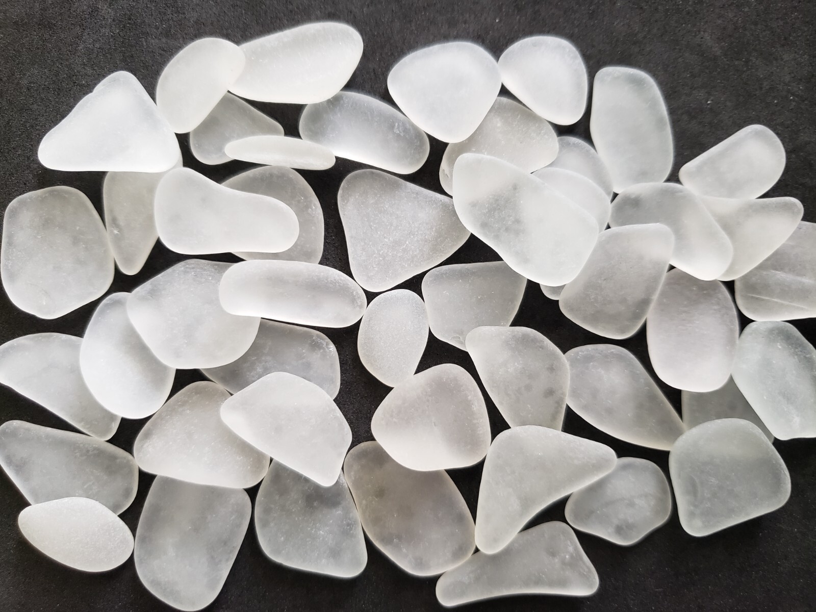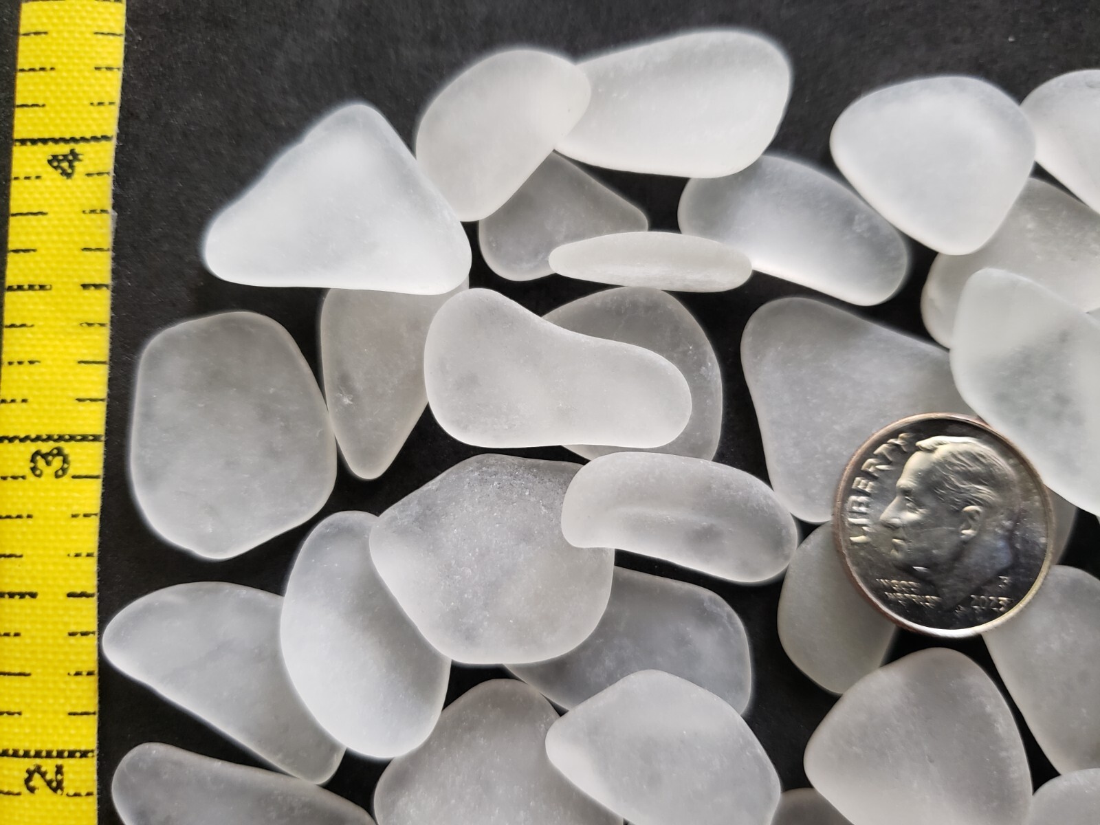 GENUINE BEACH SEA GLASS SURF TUMBLED WHITE CLEAR SNOW GOOD WELL FROSTED SMALL N3