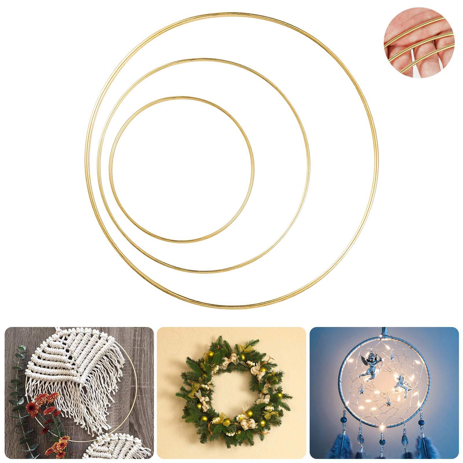 3 Pack Large Metal Floral Hoop Wreath Macrame Gold Hoop Rings Wall Hanging Craft