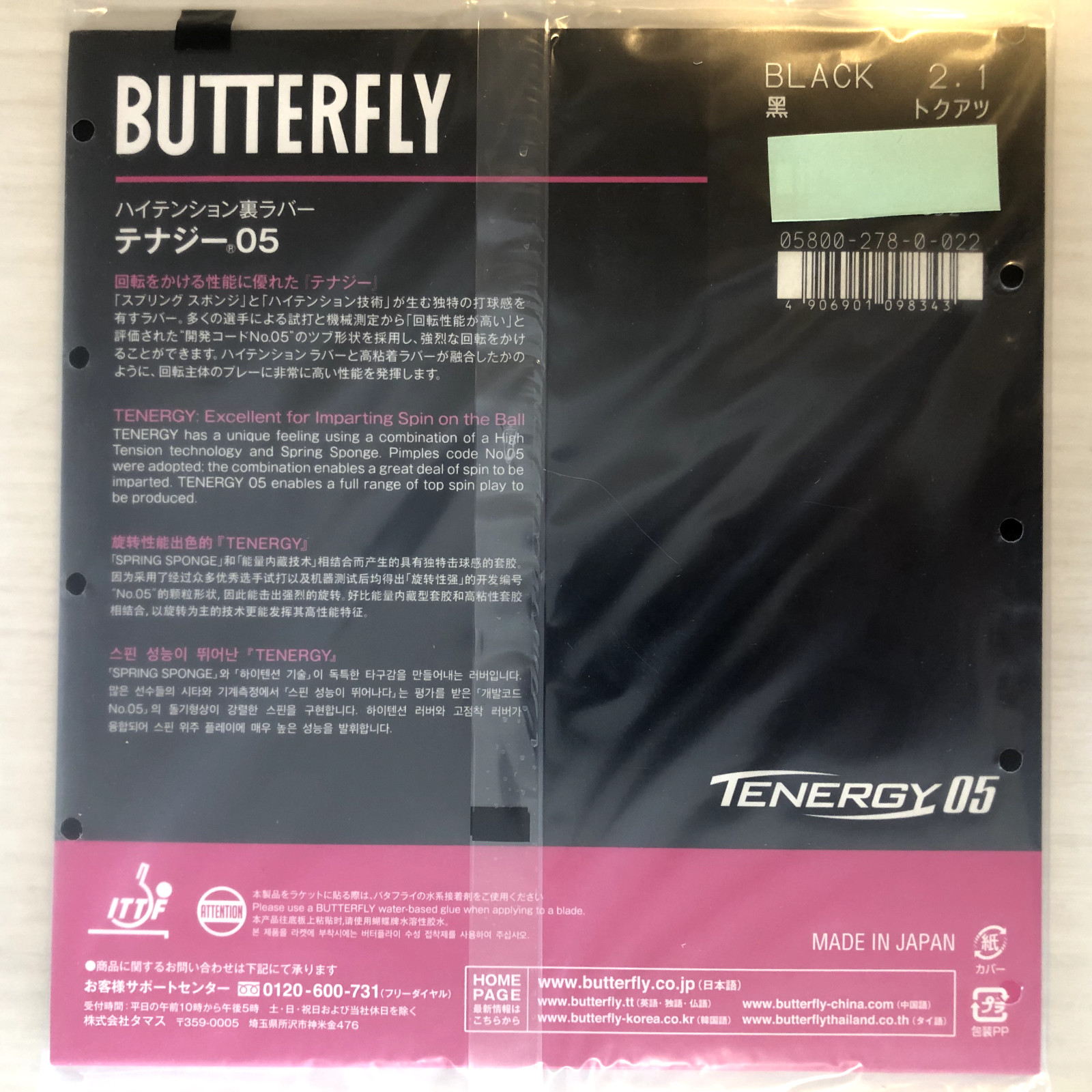 Butterfly Tenergy 05 -- Black 2.1 mm Super Thick TA 05800 Table Tennis Rubber
