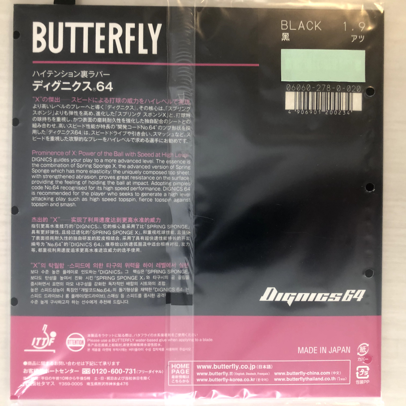 Butterfly Dignics 64 Black 1.9 mm Thick A 06060 Table Tennis Rubber