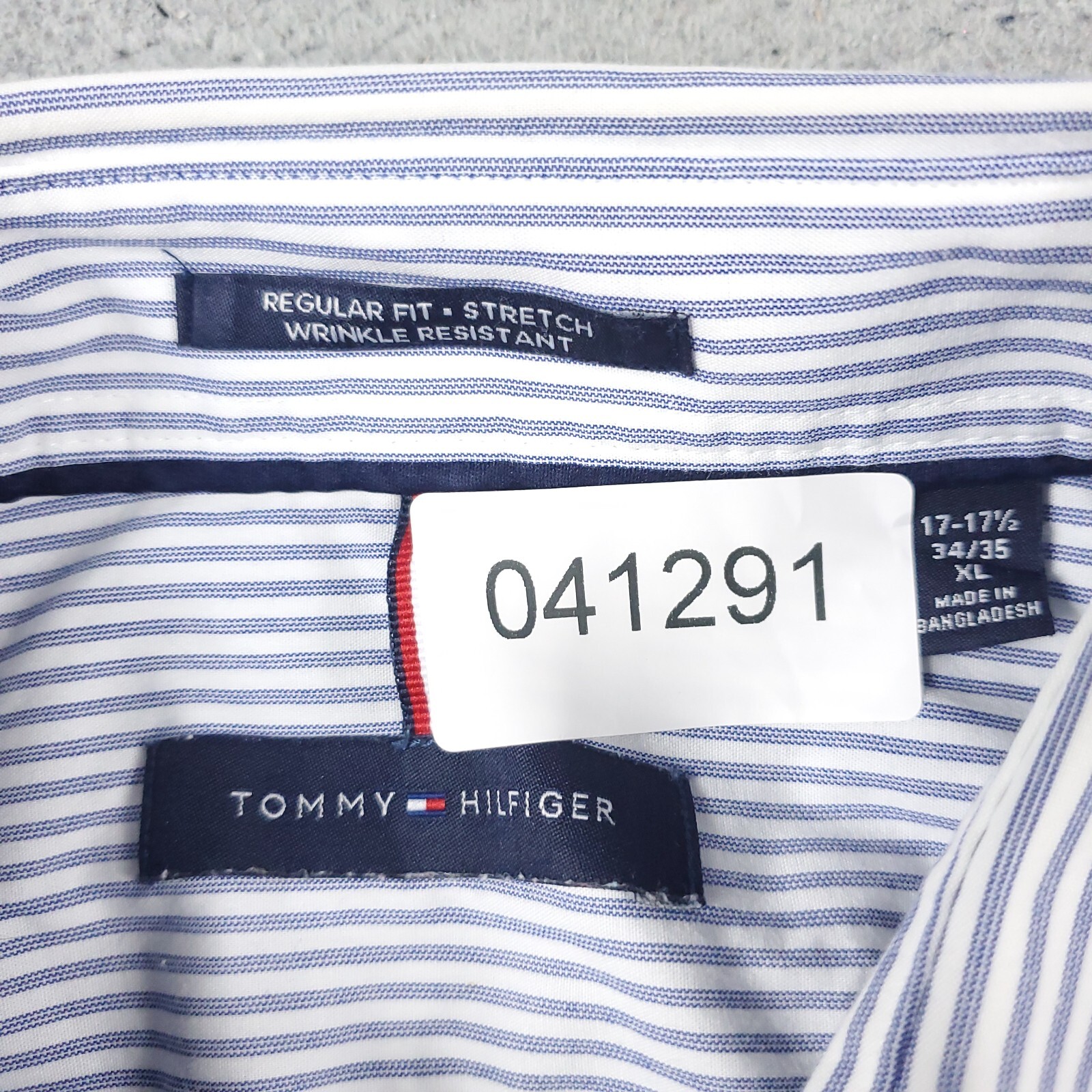 Tommy Hilfiger Shirt Mens XL White Blue Striped Casual Button Up Long Sleeve