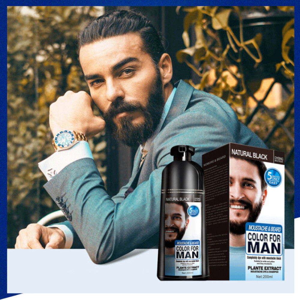 Men Black Beard Hair Dye Color Shampoo Permanent Darkening Hair Coloring-black