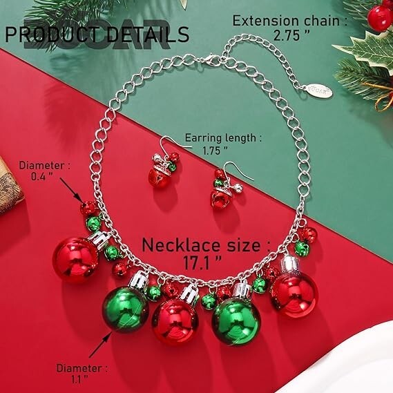 как выглядит Christmas Necklace Jingle Bell Drop Dangle Earring set Jewelry Gift For Women фото