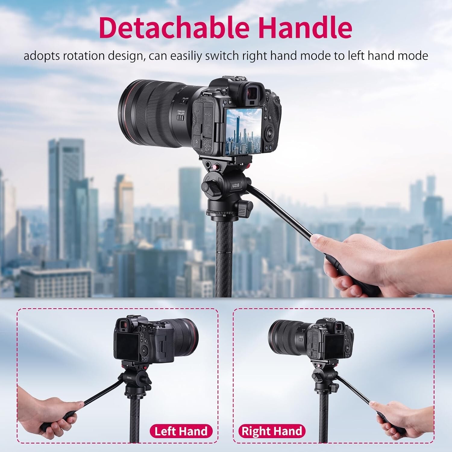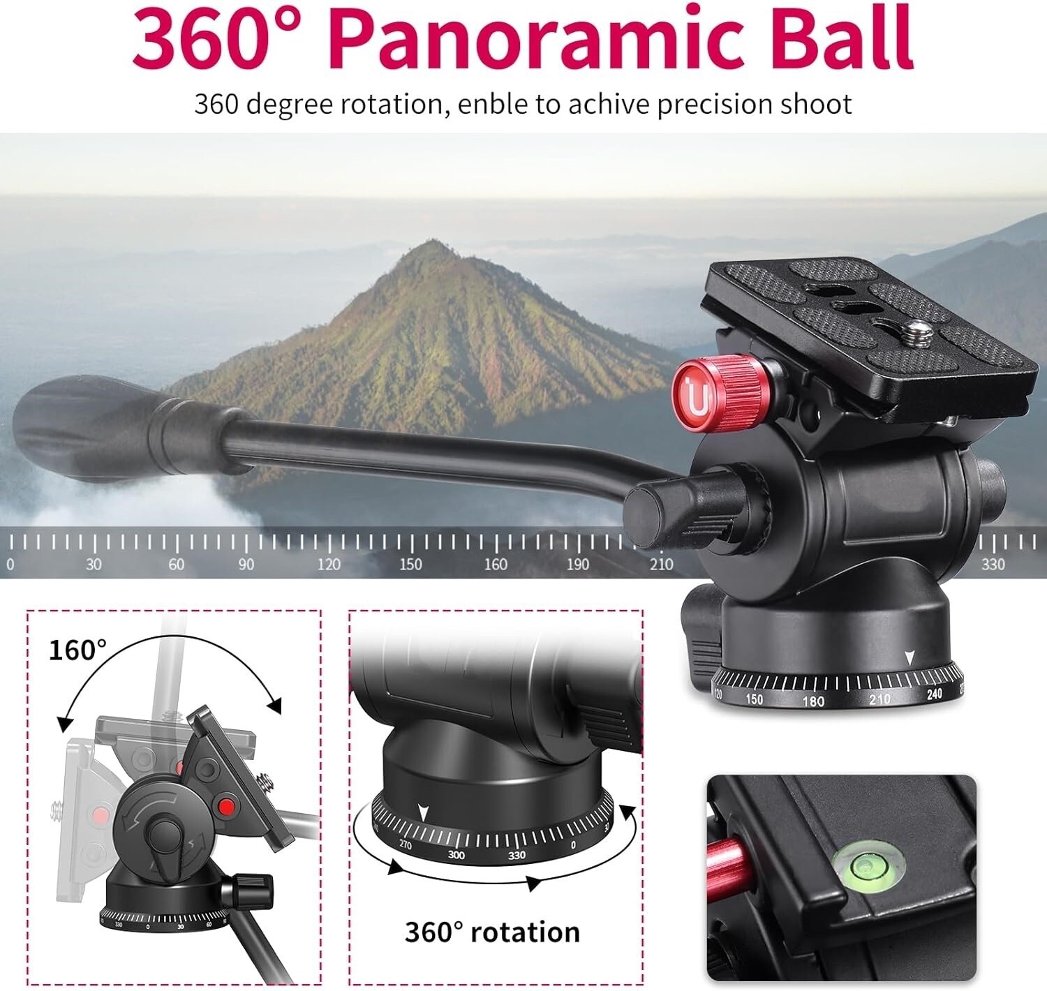 Cabezal fluido tr pode v deo compacto niveladora vertical/horizontal telesc pico