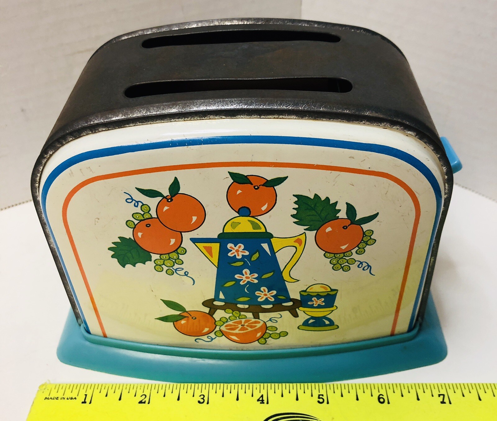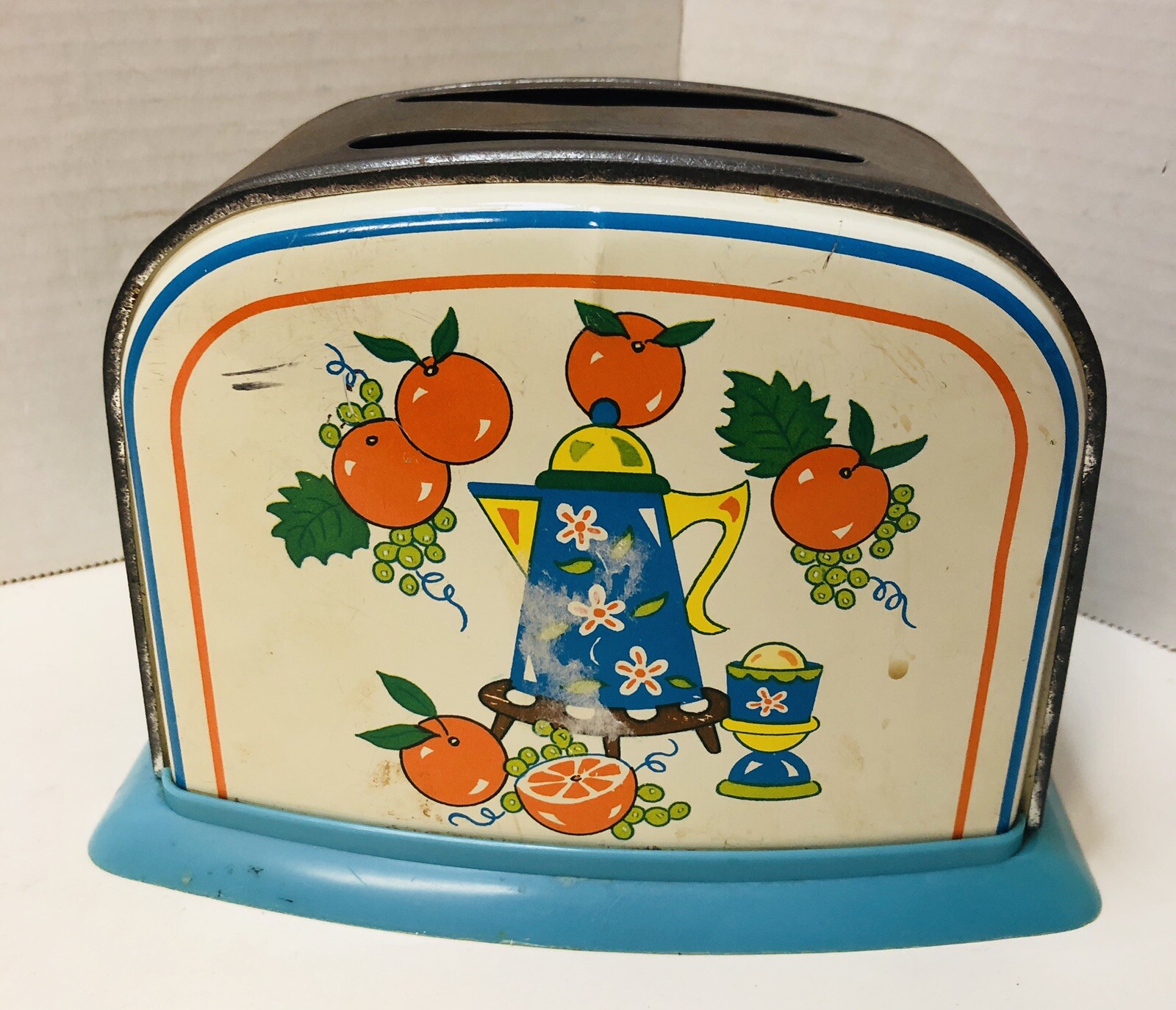 Vintage Tin Toy Children s Toaster Pretend Play Oranges Coffee Pot