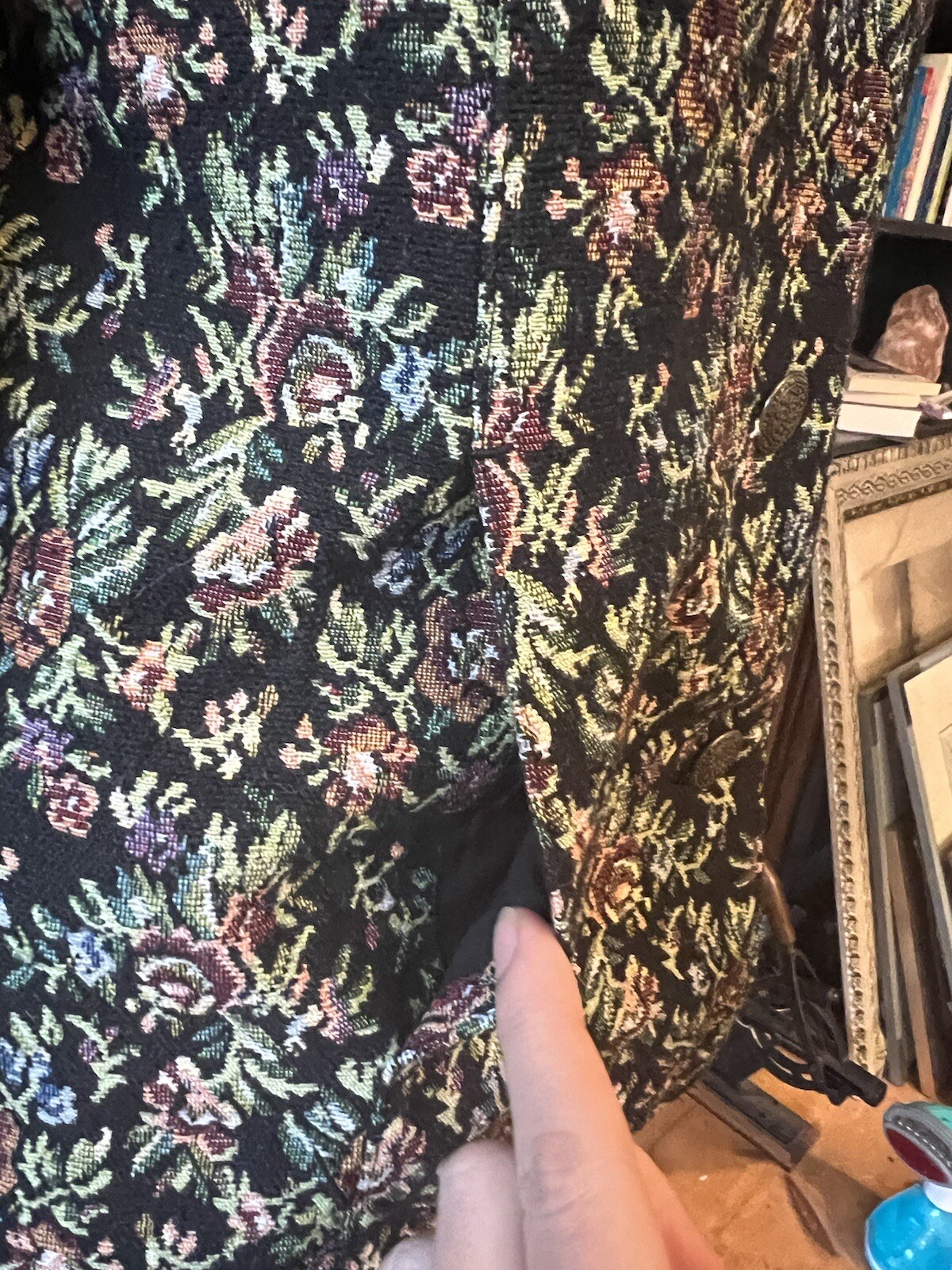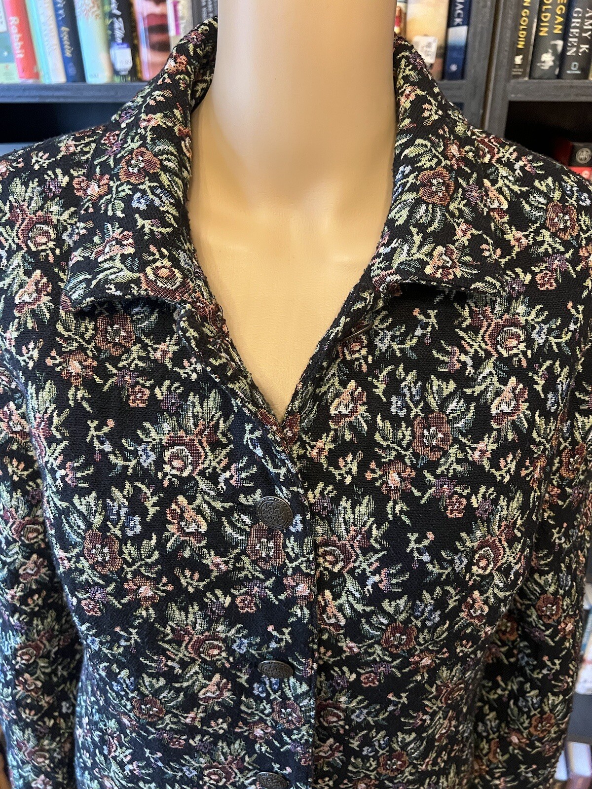 как выглядит Vintage Black Tapestry Floral Blazer Jacket Sz M Cottagecore фото