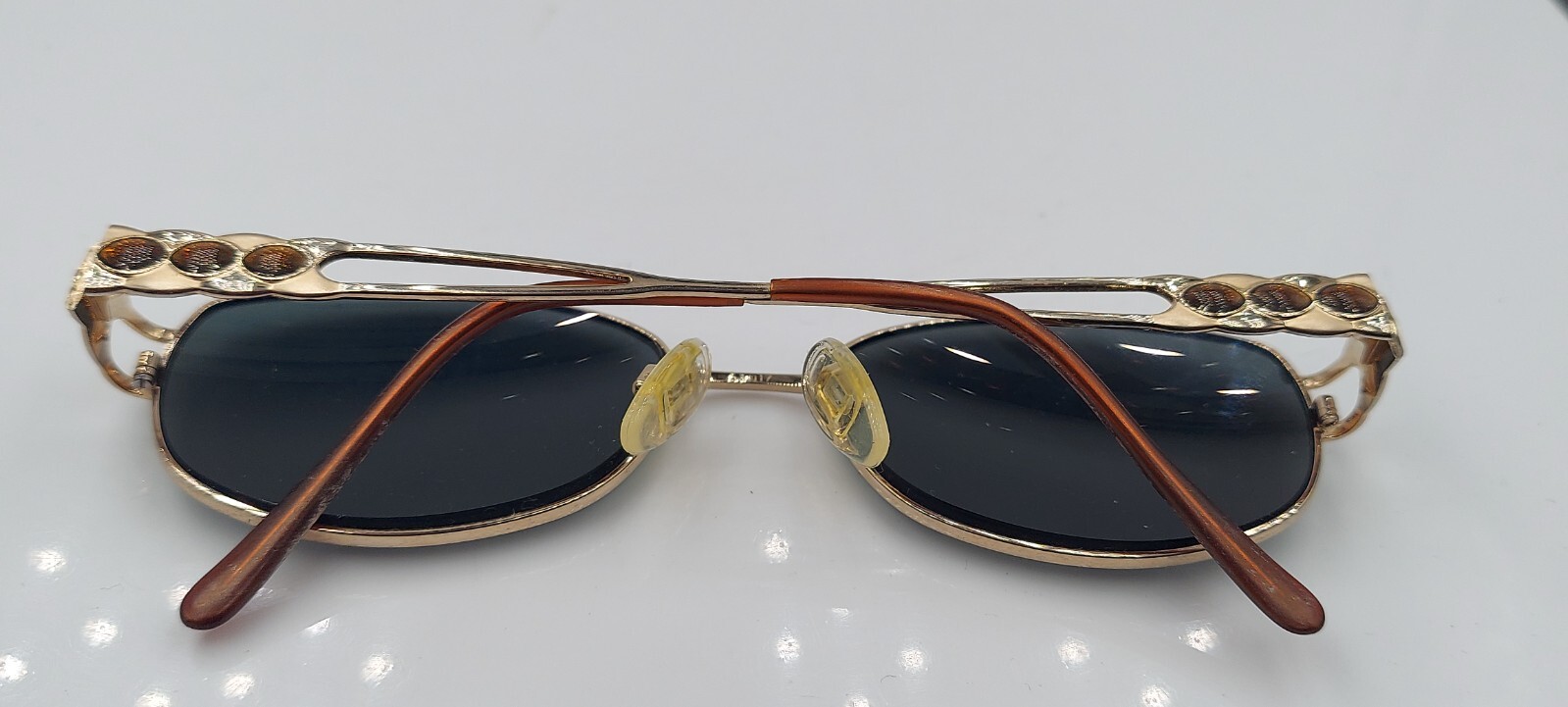 как выглядит Vintage Tura 852 Gold Bronze Oval Metal Sunglasses Japan FRAMES ONLY фото