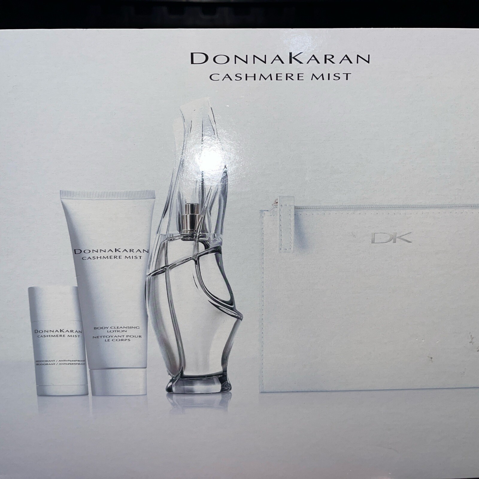 как выглядит CASHMERE MIST Donna Karan 4 Pcs Set: 3.4 oz EDP Spray, Body Cream, Deo Stick,Bag фото
