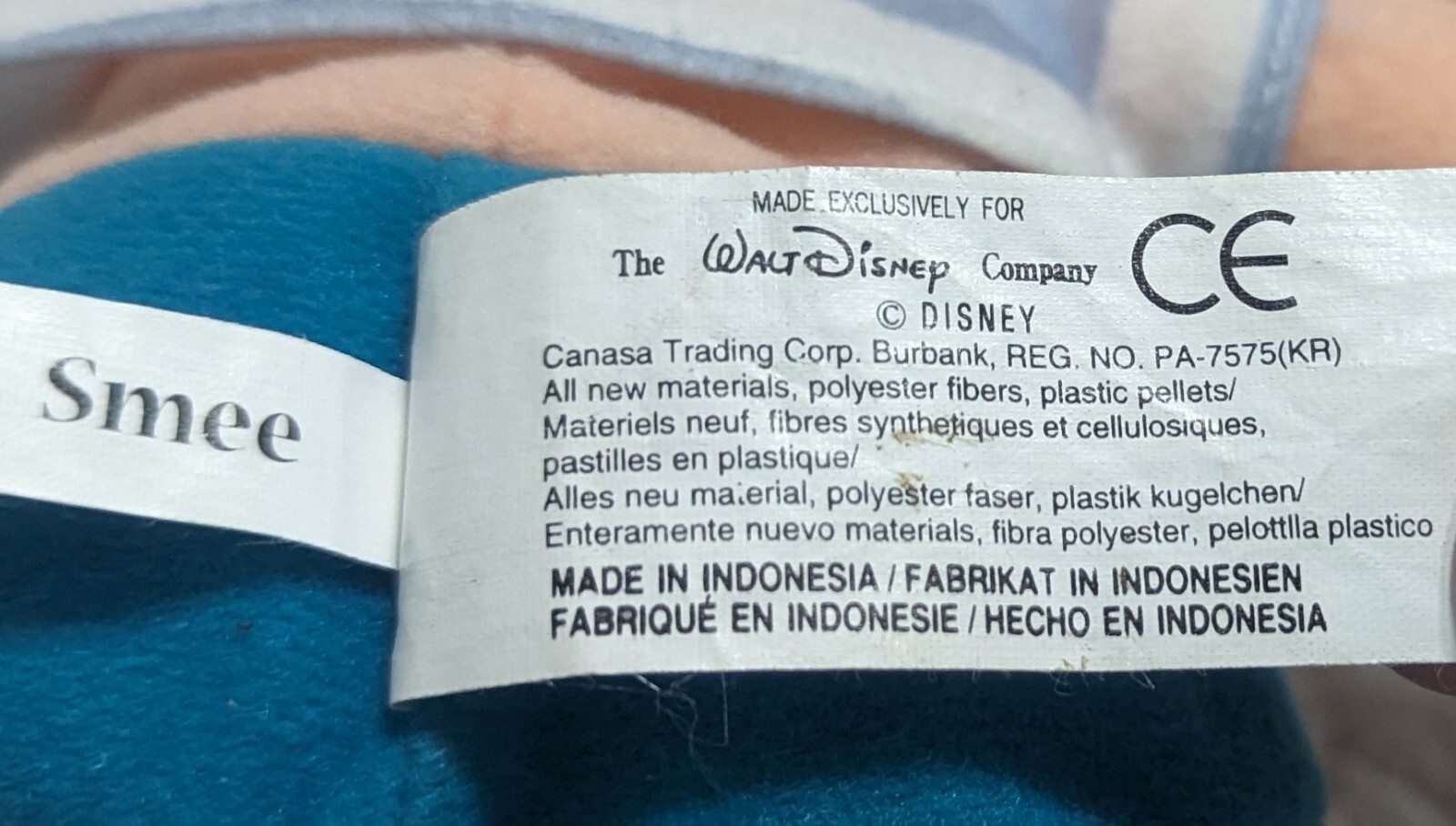 • VTG Disney Store Mr. Smee Plush 8" Bean Bag w/ Tag Peter Pan Pirate Capt Hook