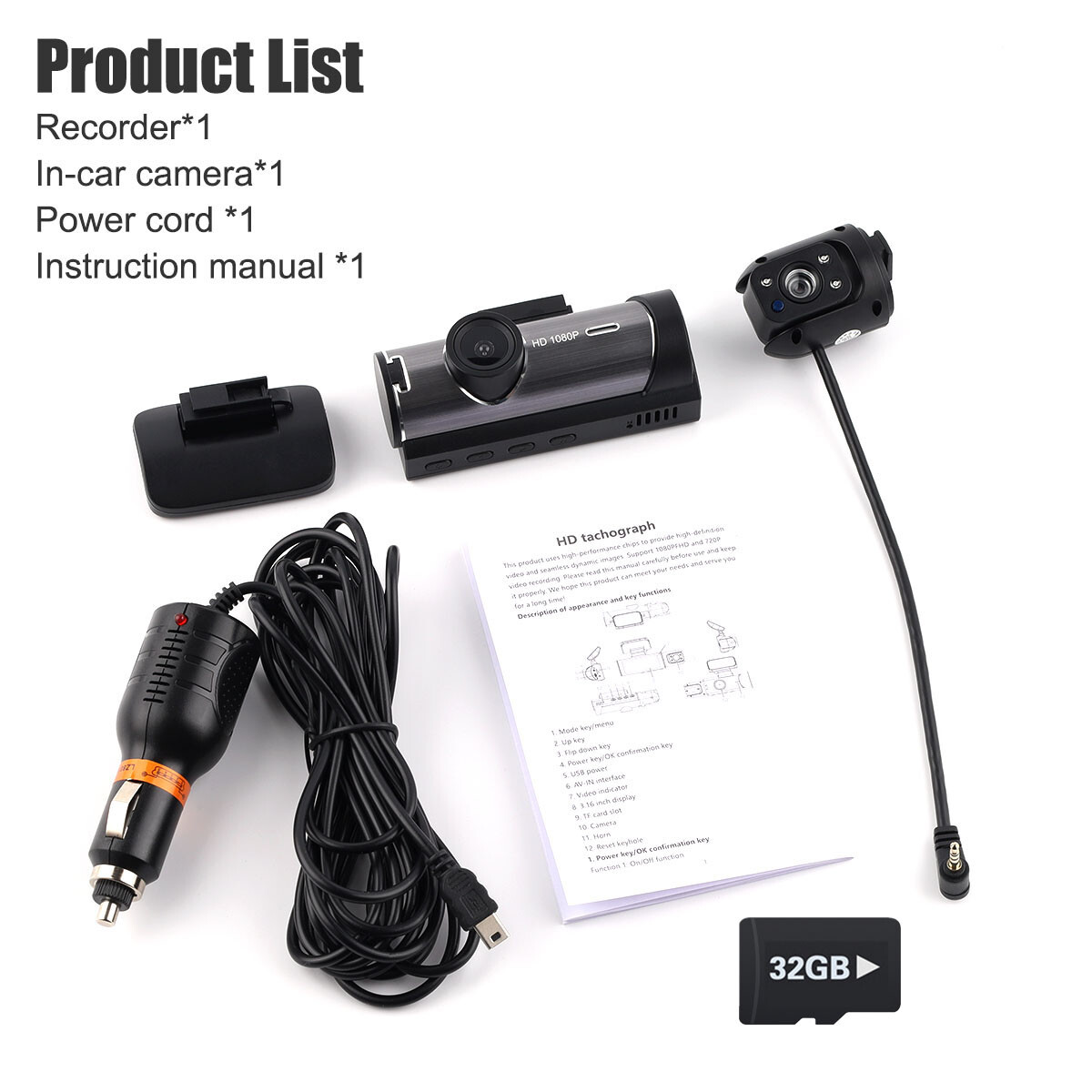1080P Dual Dash Camera Front and Inside Dash Cam for Cars Truck Van with 32GB