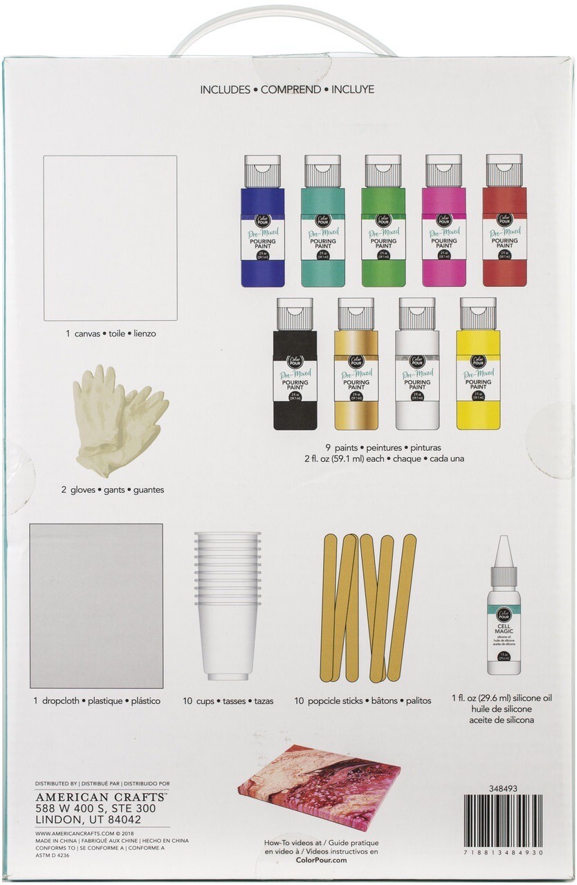 American Crafts Color Pre-Mixed Pour Art Starter Kit w/ Canvas, 348493