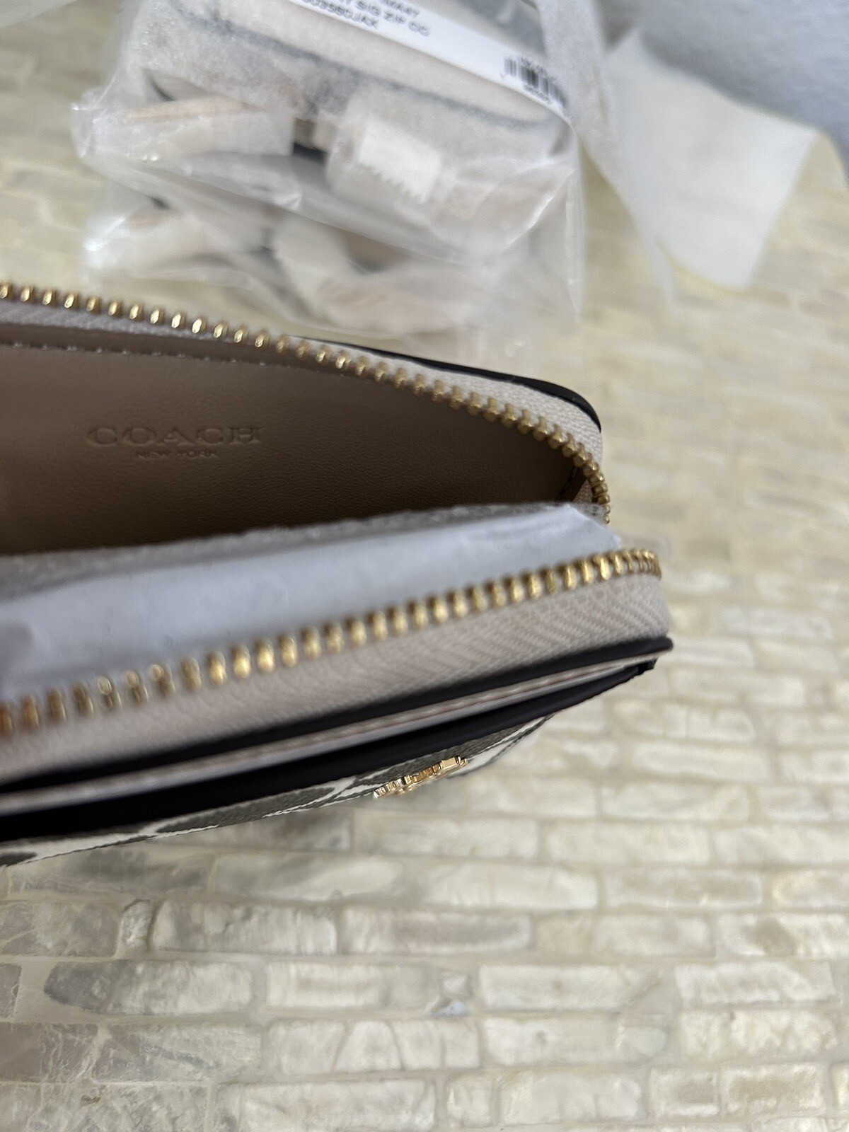 как выглядит Coach Zip Card Case In Signature Canvas Gold/Black Multi фото