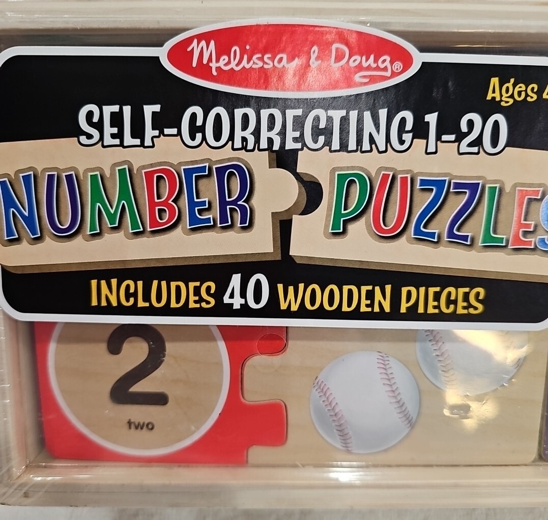 Melissa Doug Self-Correcting Wooden Number Puzzles With Storage Box 40 pcs
