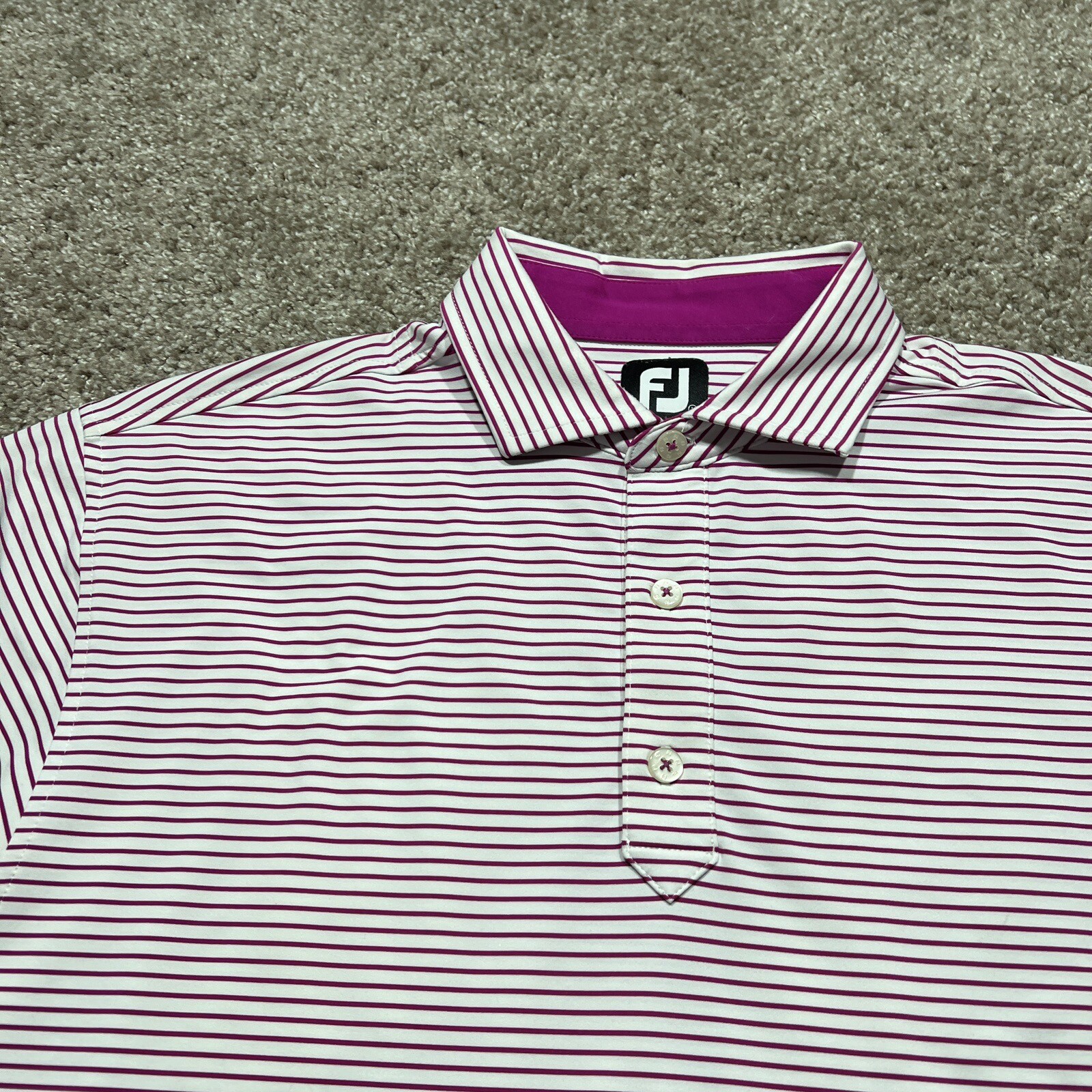 FJ Footjoy Mens Purple Striped Golf Performance Polo Shirt Embroidered Large