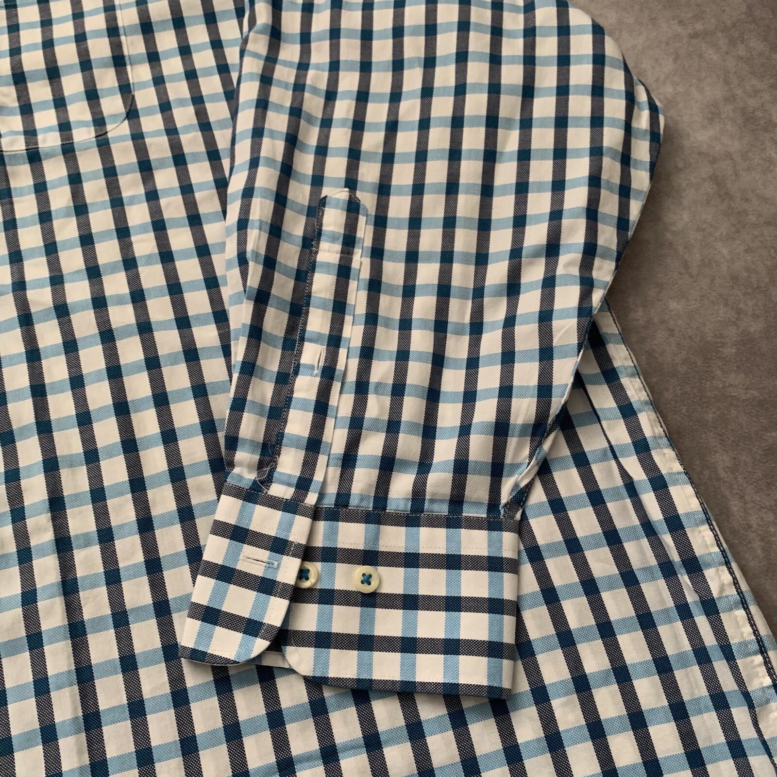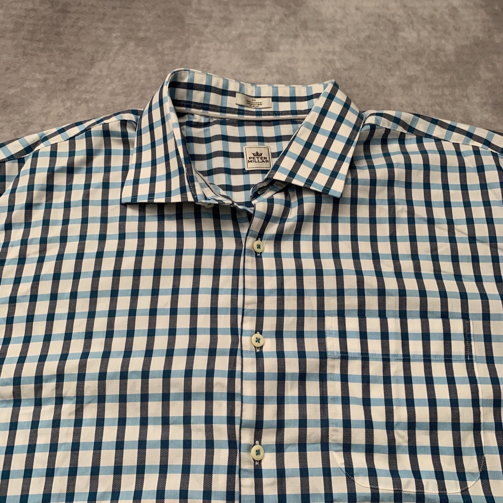 как выглядит Peter Millar Mens Button Up Dress Shirt Size 2XL 100 Cotton Blue Square Pattern фото