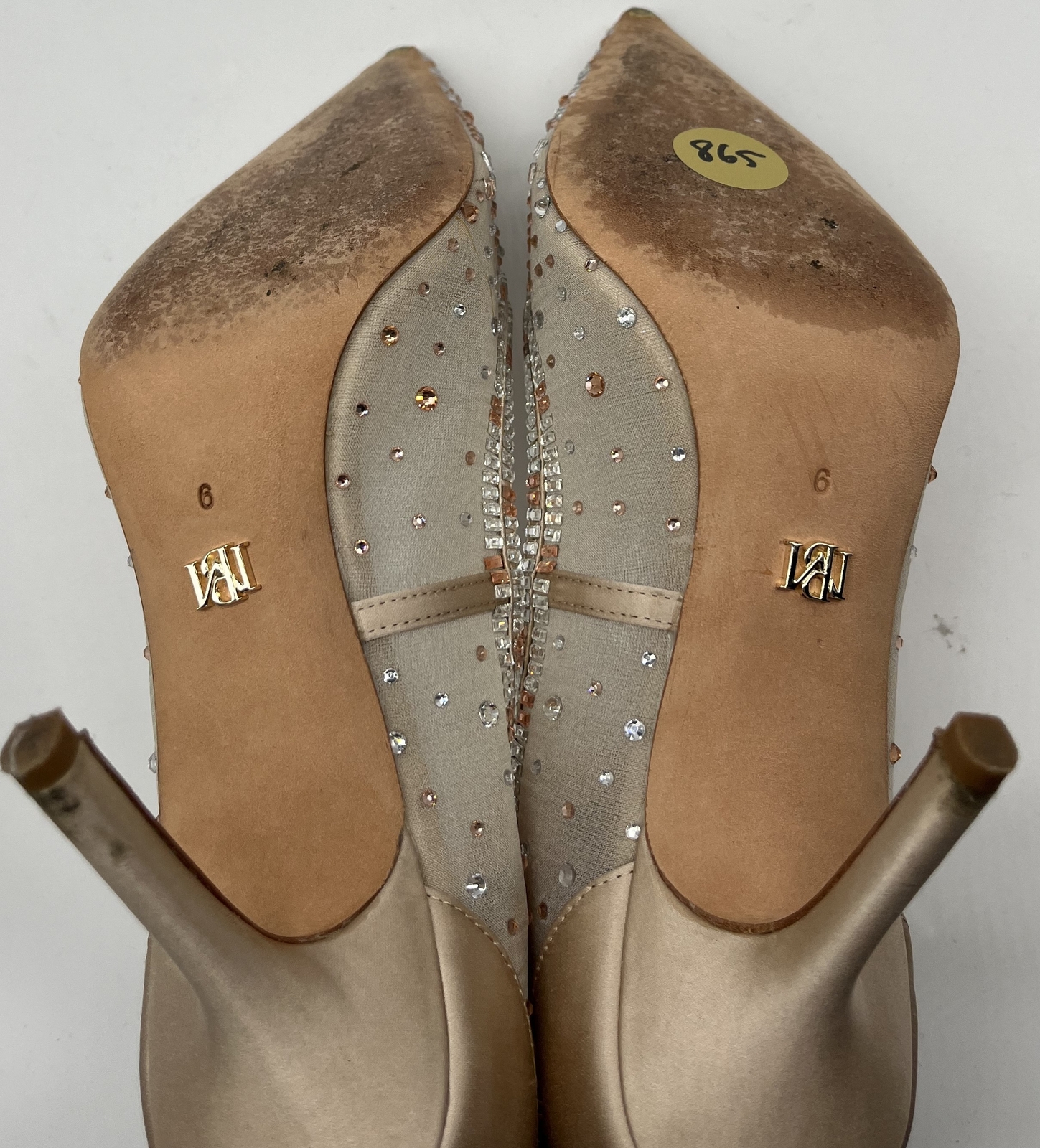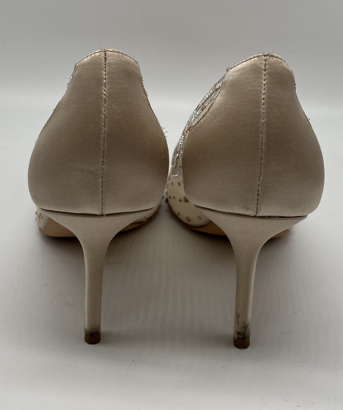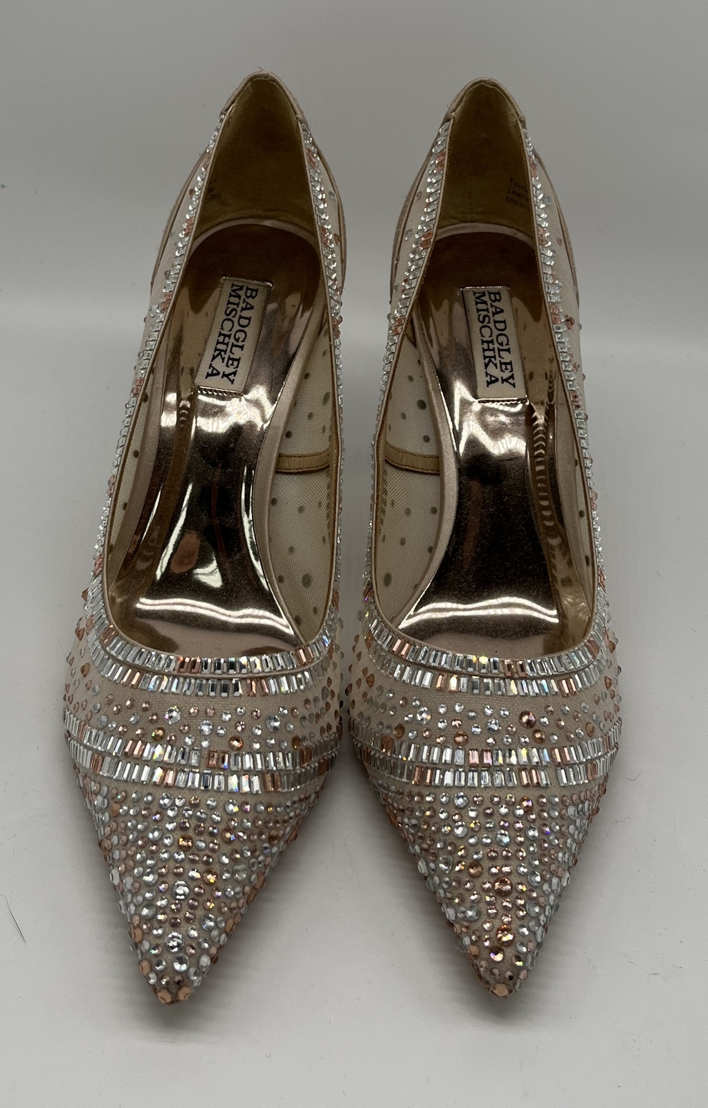 Badgley Mischka Rose-Gold Satin Rhinestone Embellished Pointed Toe Pump sz 9