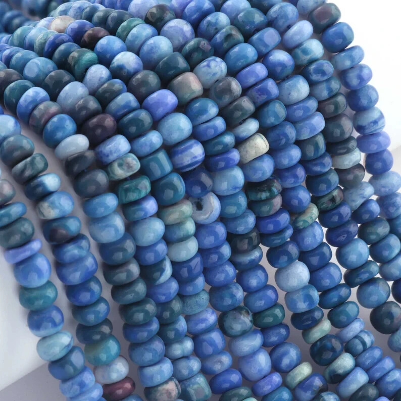 как выглядит 2 Strand Shaded Blue Opal Roundelles, Smooth Beads, 13 Inches, 5-6mm Opal Rounde фото