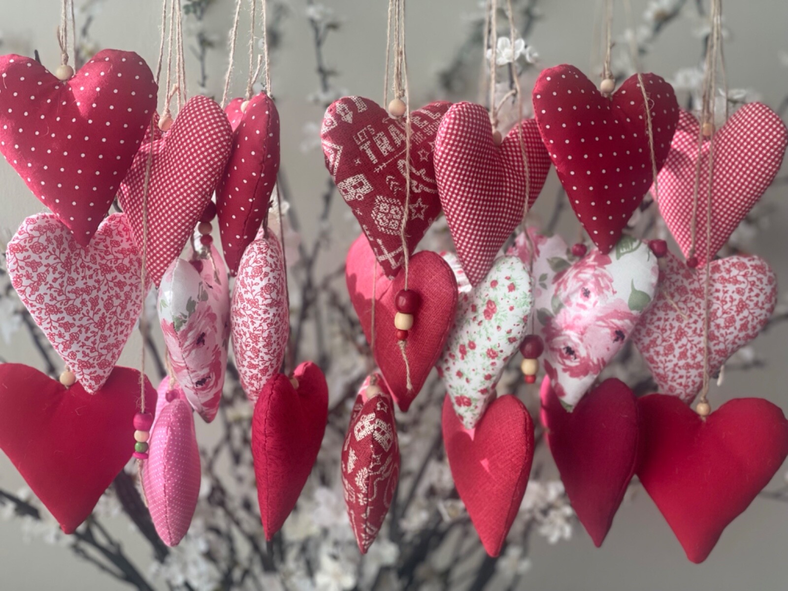valentines heart decor,Hearts Garland,Handmade fabric heart