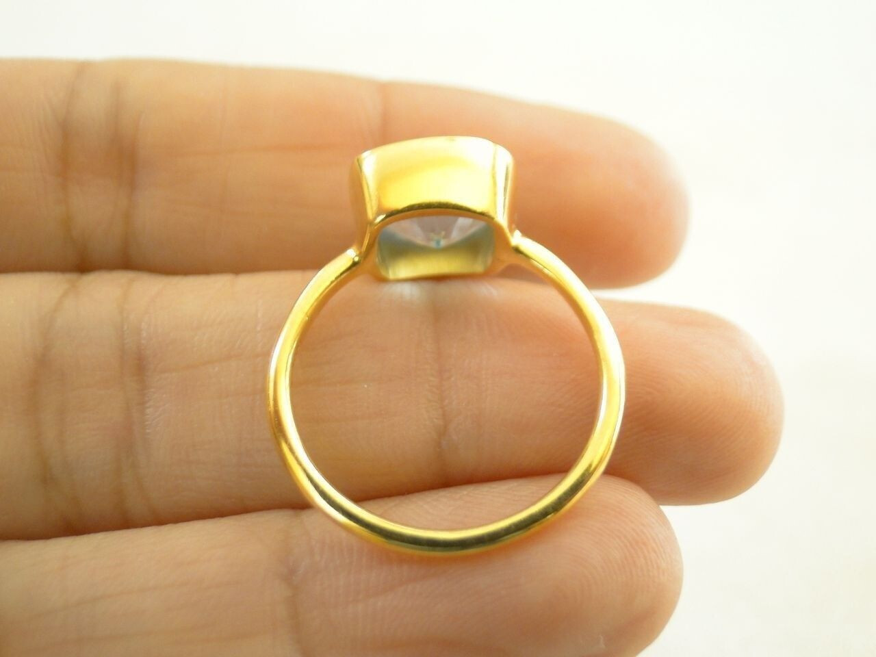 Blue Topaz 14K Gold Vermeil Solitaire 925 Sterling Silver Ring Size 8