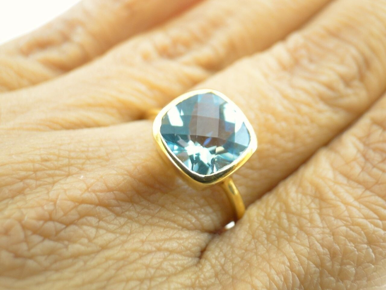 как выглядит Blue Topaz 14K Gold Vermeil Solitaire 925 Sterling Silver Ring Size 8 фото