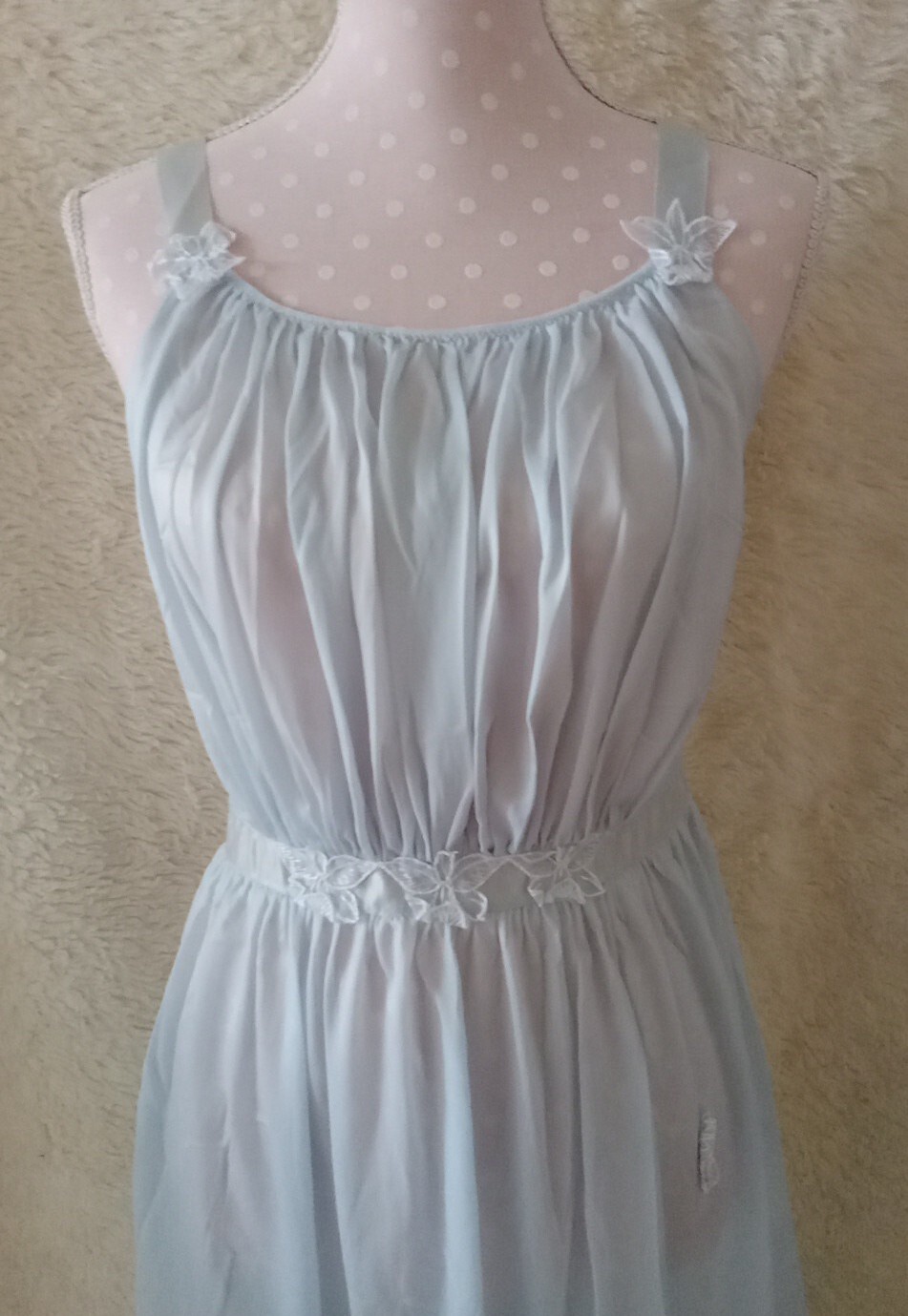 Vintage ROGERS Women's 34 Small Blue Goddess Long Nightgown Beautiful