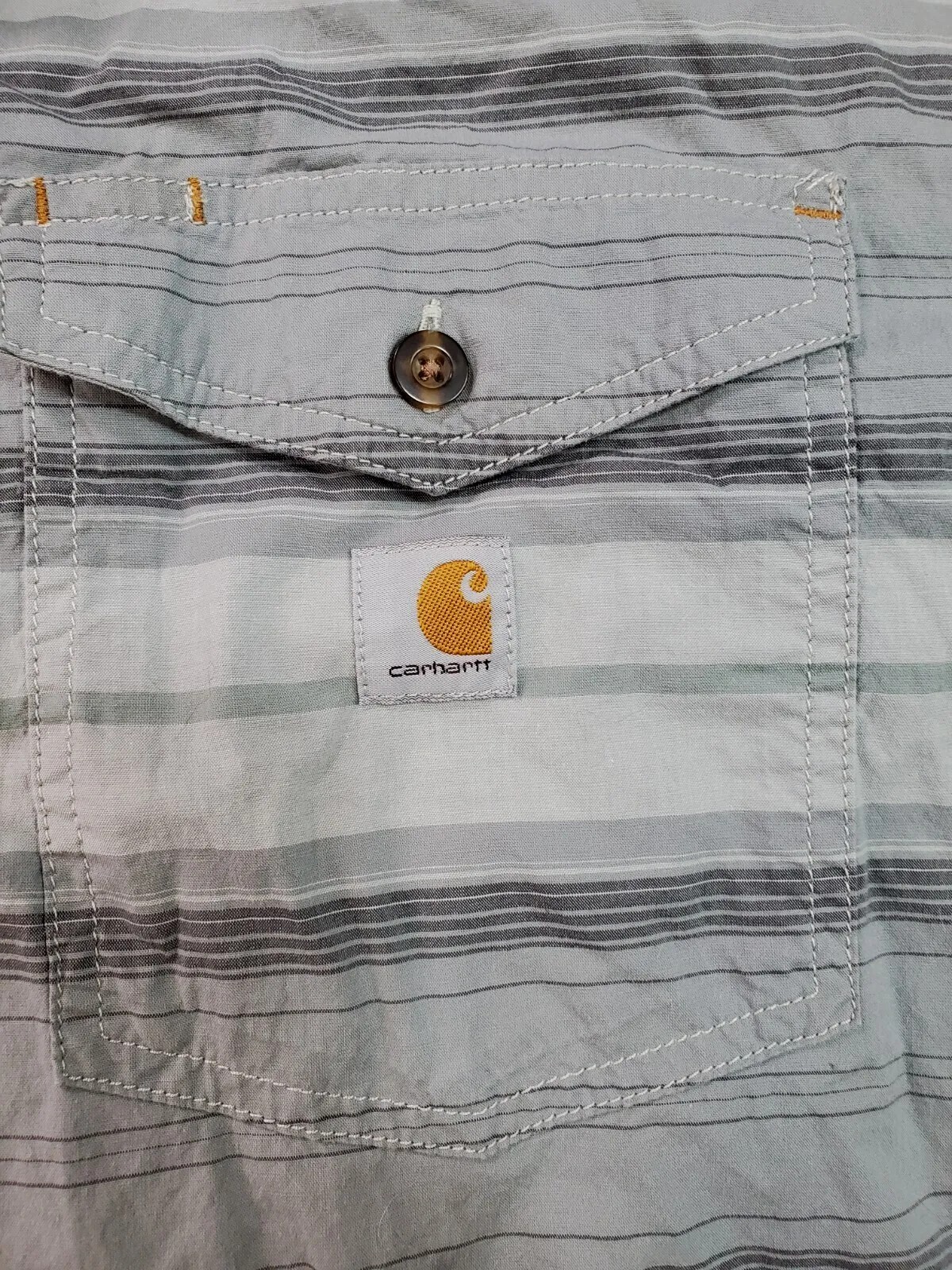 Carhartt Shirt Mens 2XL Button Up Short Sleeve Rugged Flex Relaxed Gray Stripes