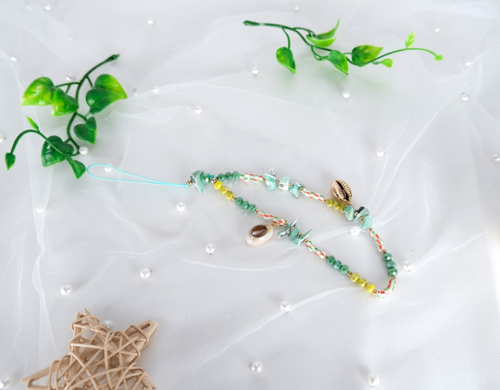 Handmade Shell Kawaii Beaded Phone Charm Accessories Blue Boho Phone Charm Beads