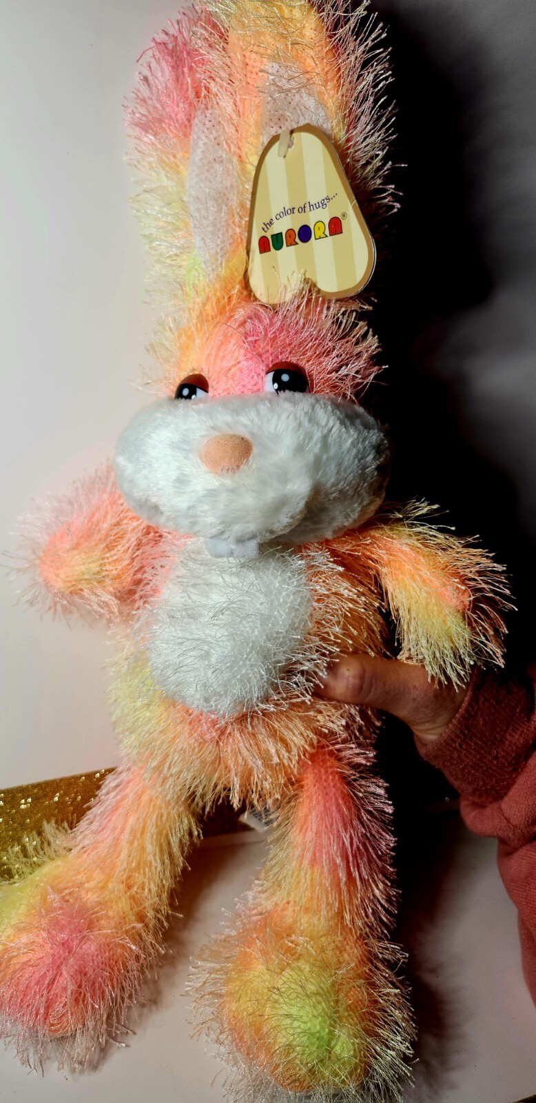 Aurora Plush Bunny, Colorful, Peach and Yellow, Adorable, Excellent Condition