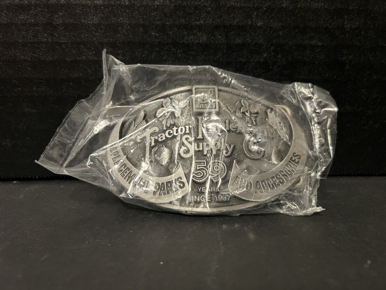 VTG Tractor Implement Supply Co. 59 Yrs Pewter Belt Buckle Since 1937 Farming