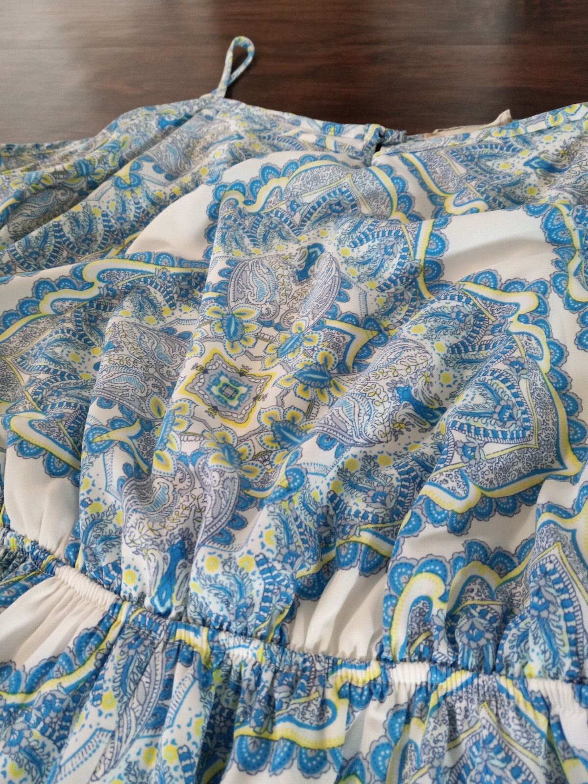 Women's Altar'd State White Blue Mosaic Long Sleeve Cold Shoulder Romper Size L