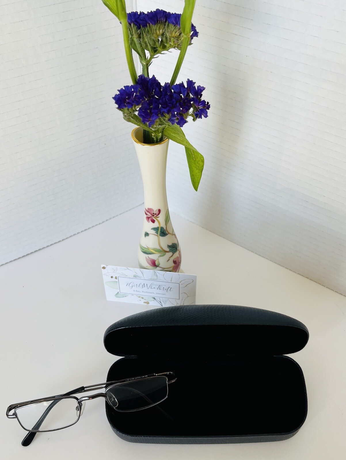 как выглядит BROOKS BROTHERS Eyeglass Case Hard Shell Pebbled Navy Blue w Gold Lettering фото
