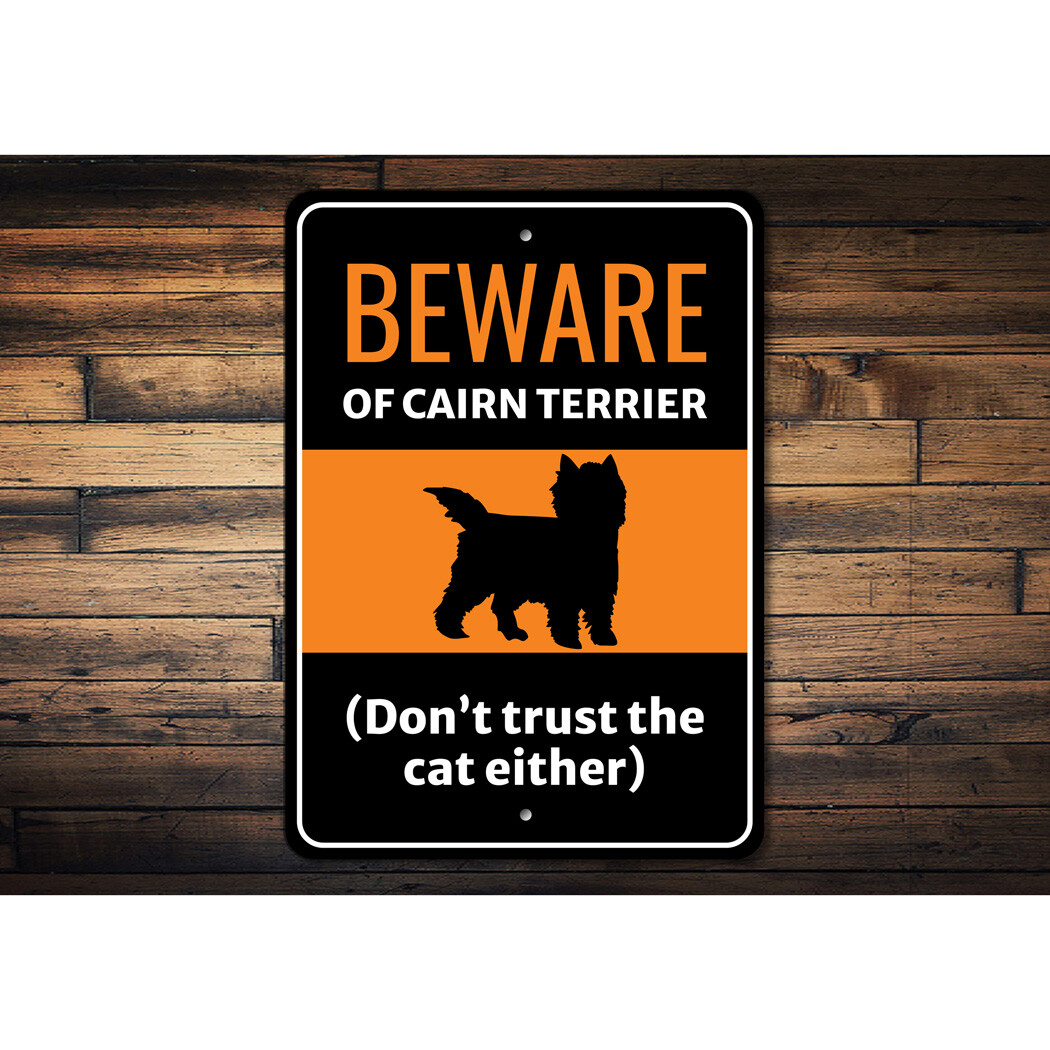 Beware Of Cairn Terrier Dog Don't Trust The Cat Either Sign