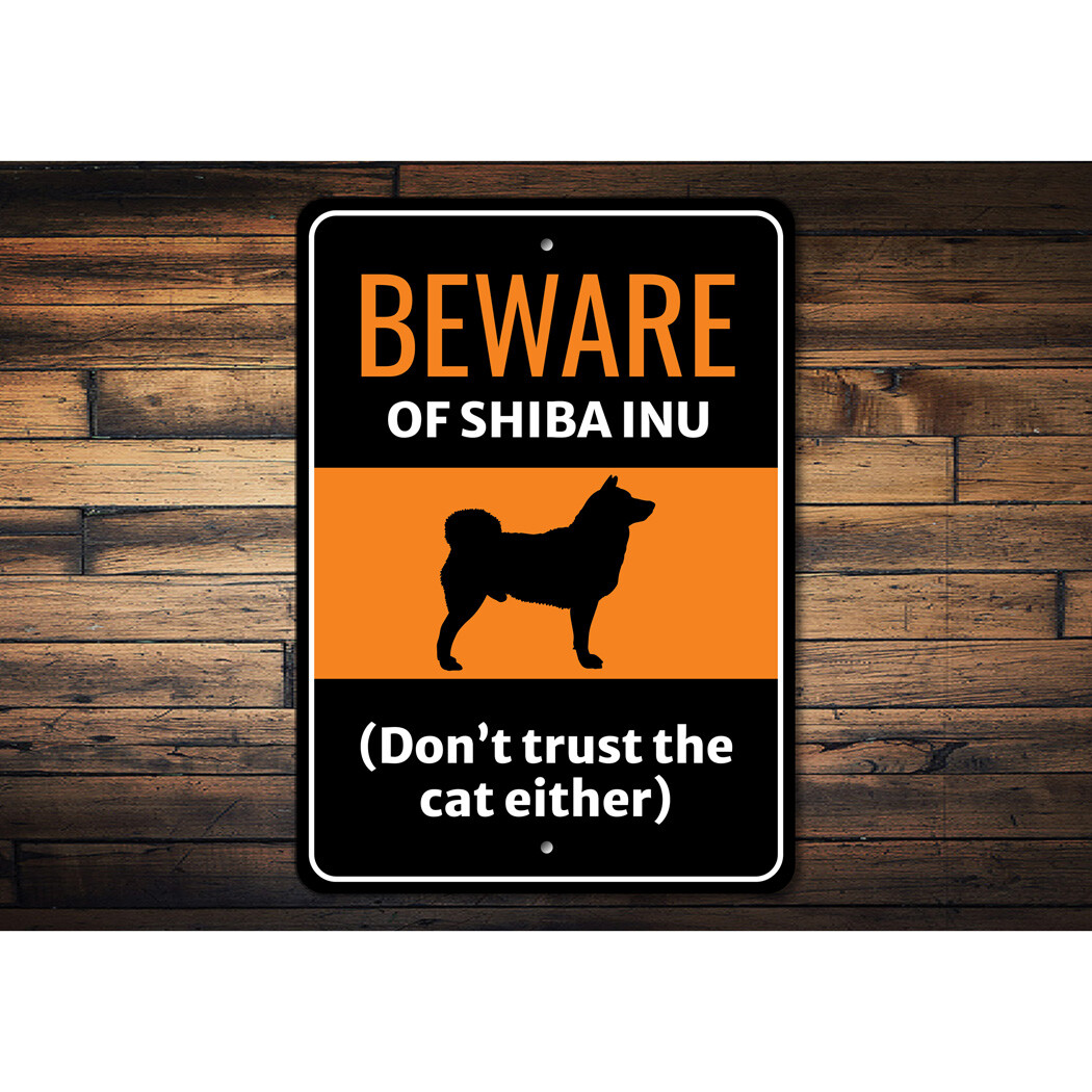 Beware Of Shiba Inu Dog Don't Trust The Cat Either Sign