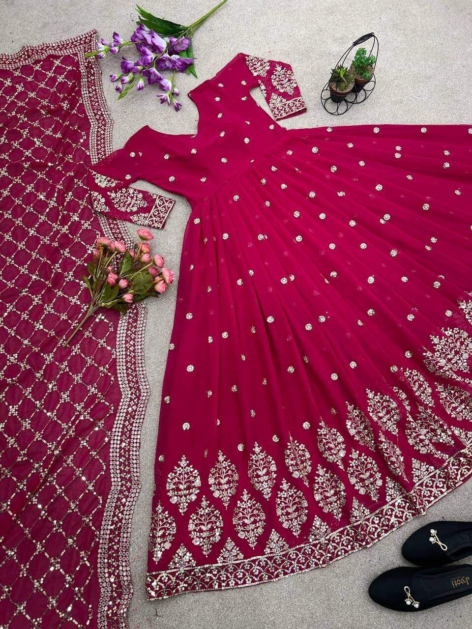 как выглядит PRESENTING NEW FAUX GEORGETTE GOWN WITH DESIGNER DUPATTA FOR RECEPTION WEAR фото
