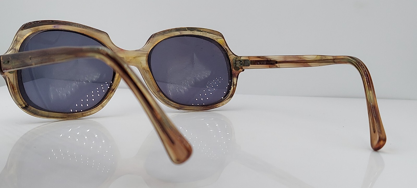 как выглядит Vintage Univis Wild Rose Gray Oval Horn-Rimmed Sunglasses USA FRAMES ONLY фото