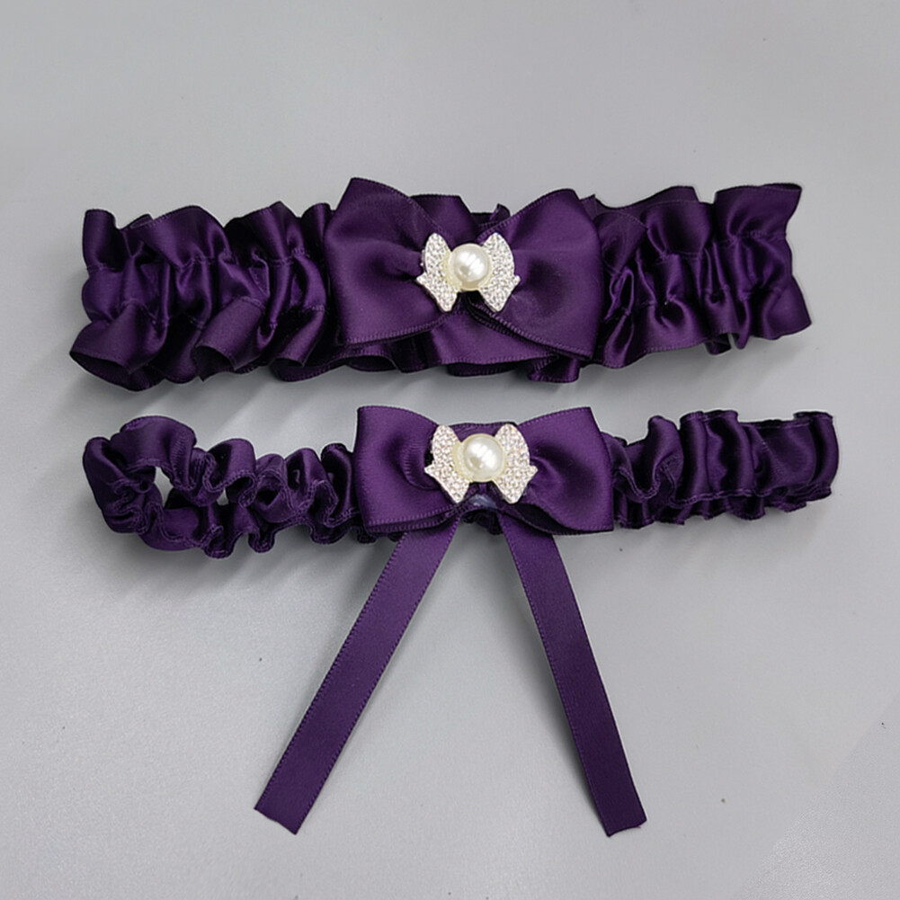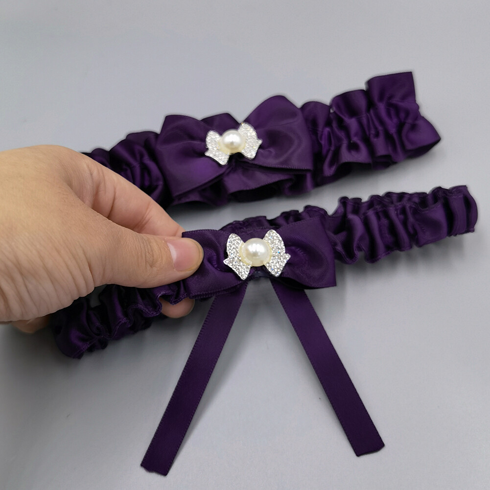 Grape Purple Satin Bridal Garter Belt Set Wedding Garters for Bride Leg Garter