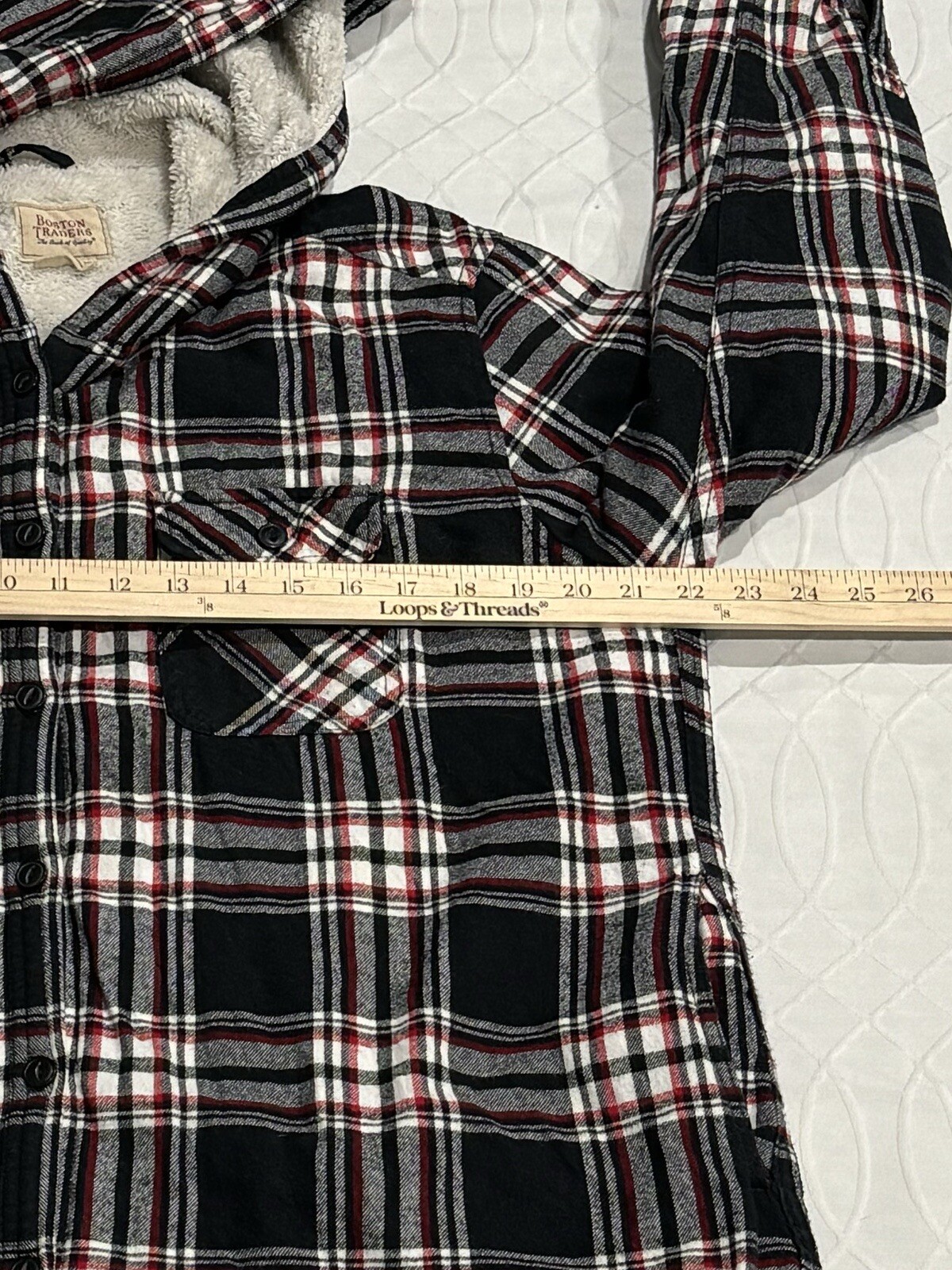 как выглядит Boston Traders Sherpa Lined Plaid Flannel Hooded Jacket/Shirt Women