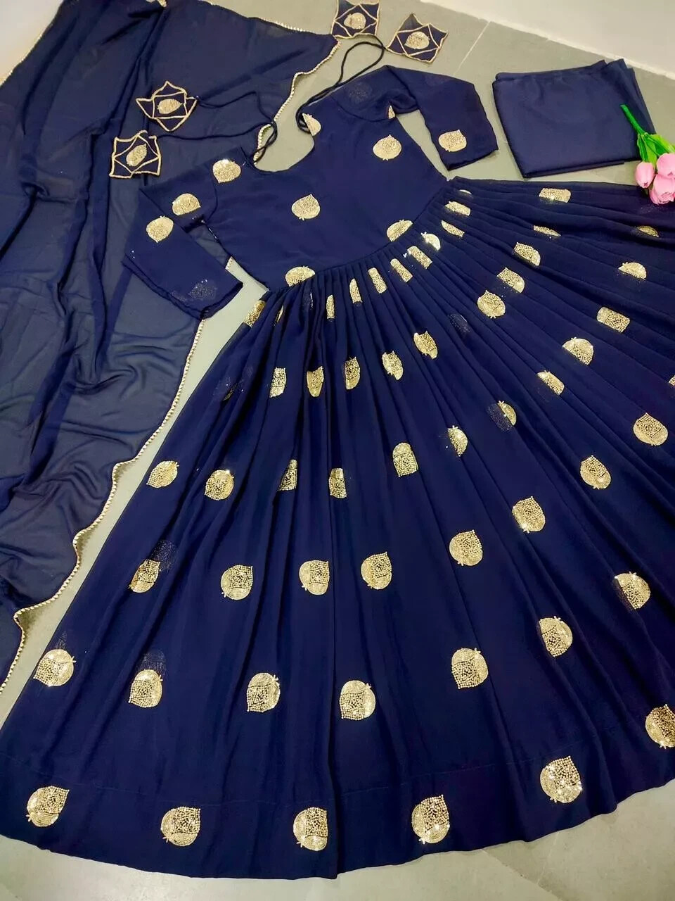 как выглядит Function Wear Faux Georgette Blue Gown With Bottom And Dupatta For Women фото
