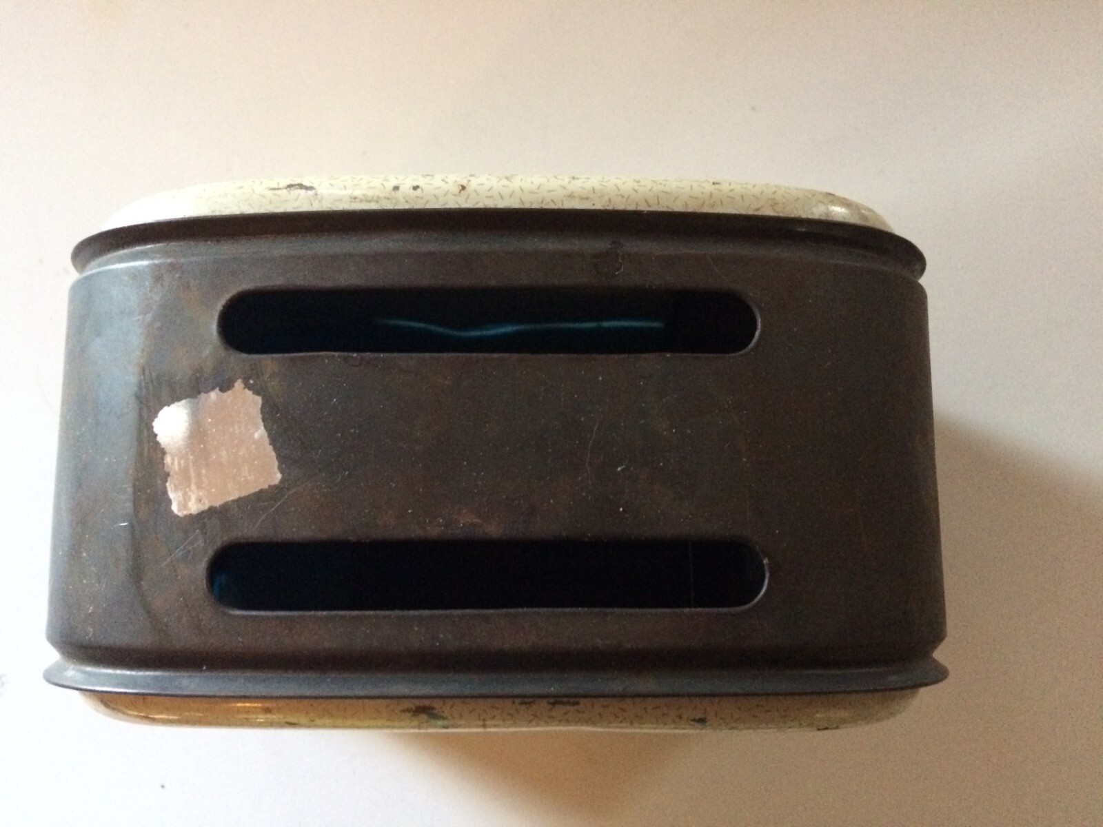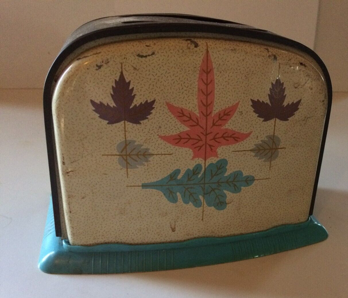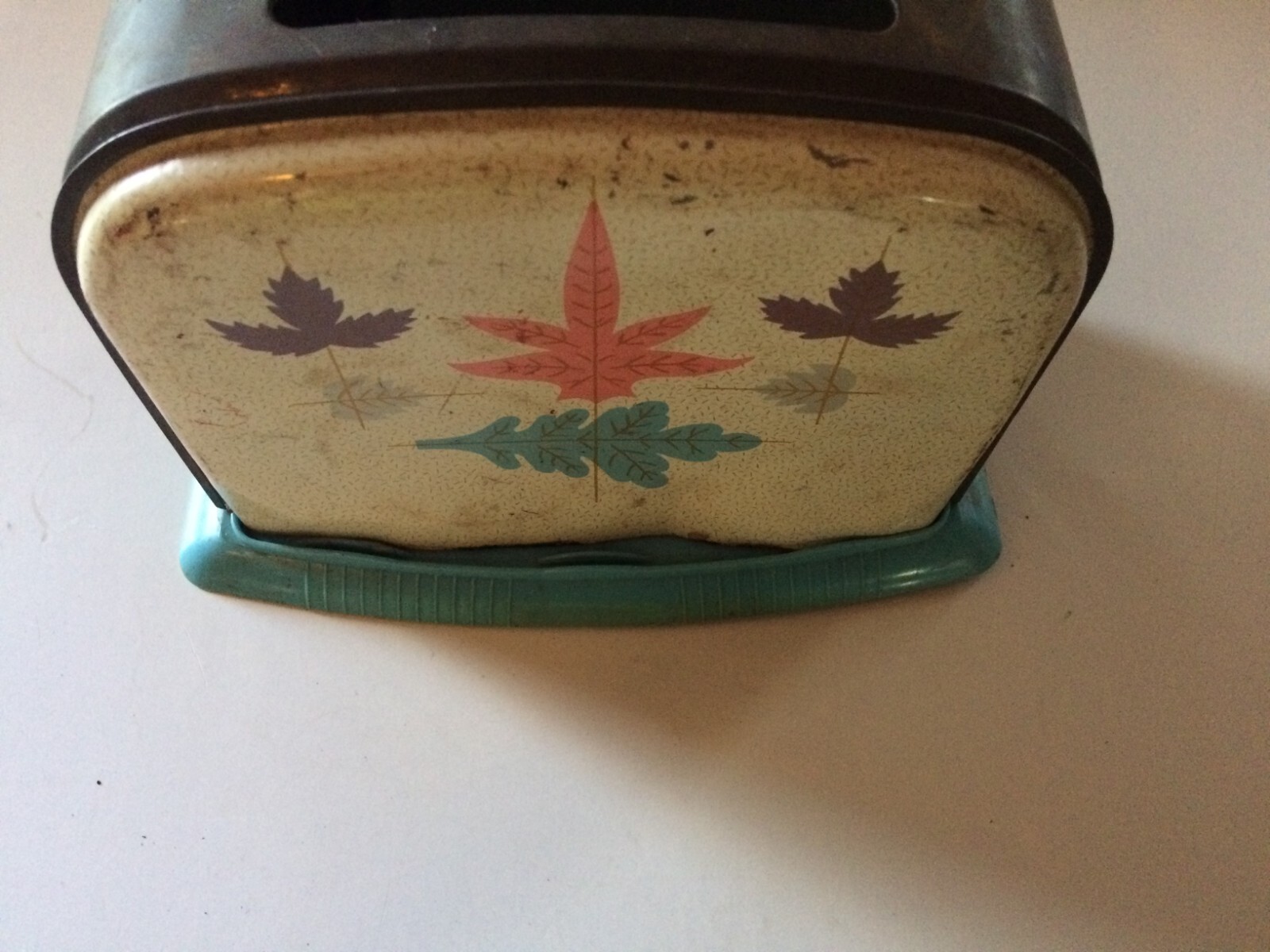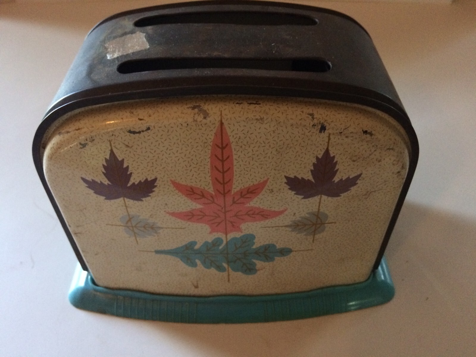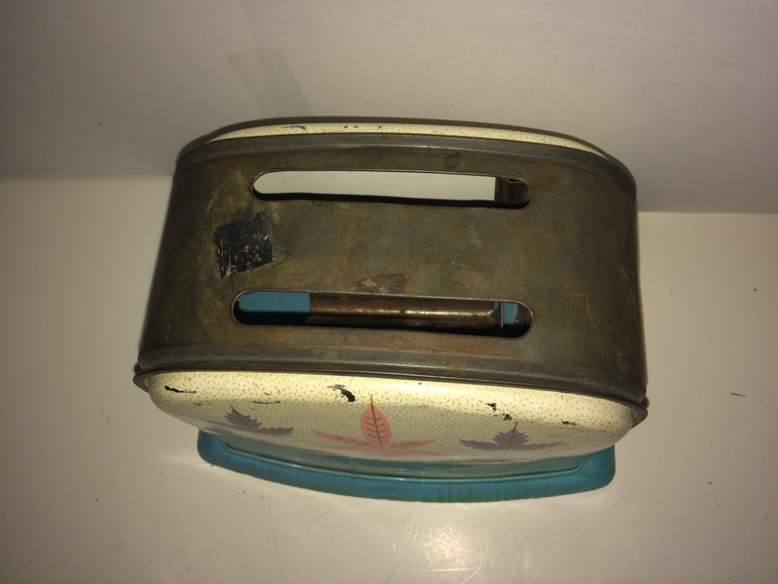 Vintage 1960s Childs Toaster USED 2 Slice Metal Tin Leaves Teal Pink Non-working