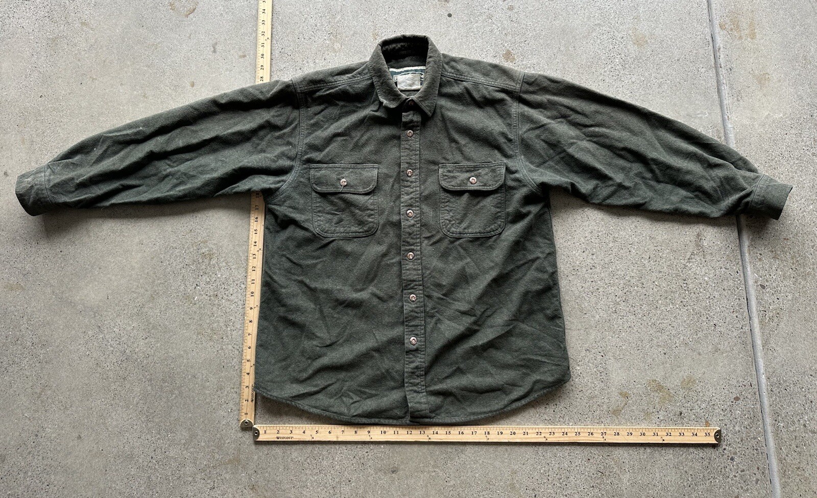 Vintage Field Stream Green Cotton Flannel Button Up Long-sleeve Shirt Size XL