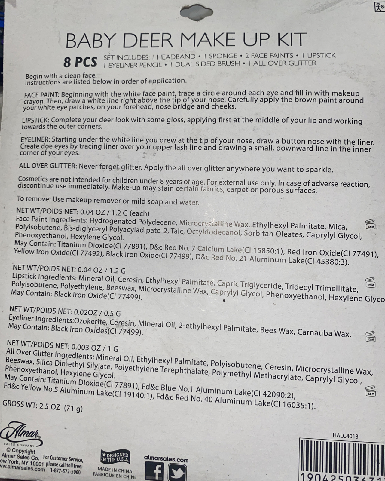 Deer Makeup Kit Deer Halloween Costume Headband Makeup Kit. 8 Pieces