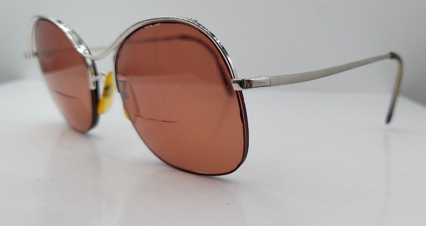 как выглядит Vintage Zimco Royal Princess Silver Oval Half-Rim Metal Sunglasses FRAMES ONLY фото
