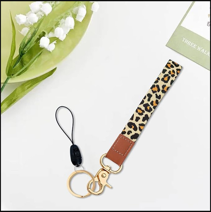 Wrist Lanyard for Keys, Wristlet Strap Keychain for Women Men Leopard Print